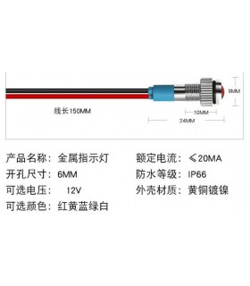 LED светодиод красный DC с питанием 12V и лиаметром монтажной резьбы 6мм. Характеристики и размеры указаны на фото.
