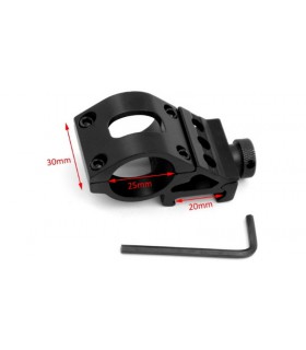Зажим для фонарика прицела алюминий 25мм на планку 20мм.