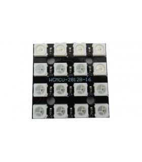 Светодиодный модуль RGB WS2812 5050 квадрат 16 диодов.Печатная плата с размещенными на ней 16-ю RGB светодиодами WS2812, управляемыми по последовательной шине. Очень удобно соединять несколько таких плат...