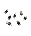 • Монтаж через отверстия: Транзисторы навесные имеют три вывода (эмиттер, коллектор и база для BJT или исток, сток и затвор для FET), которые проходят через отверстия в печатной плате.