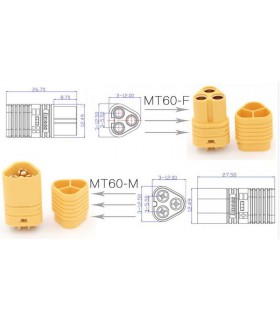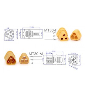 Комплект разъемов MT30 3 Pole для защиты ваших соединений двигателя и ESC. В комплекте разъемы папа и мама.Технические характеристики:Размеры: 20х10х10 мм (в собранном виде )Вес: 2,96 г (комплекта)Подходит для: 16AWG...