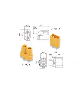 Штекер разъем нейлоновый XT30 пара 30A. Разъем XT30 - один из популярных силовых разъемов, используемых в моделировании. Круглая форма контактов разъема XT30 гарантирует надежное и плотное соединение.