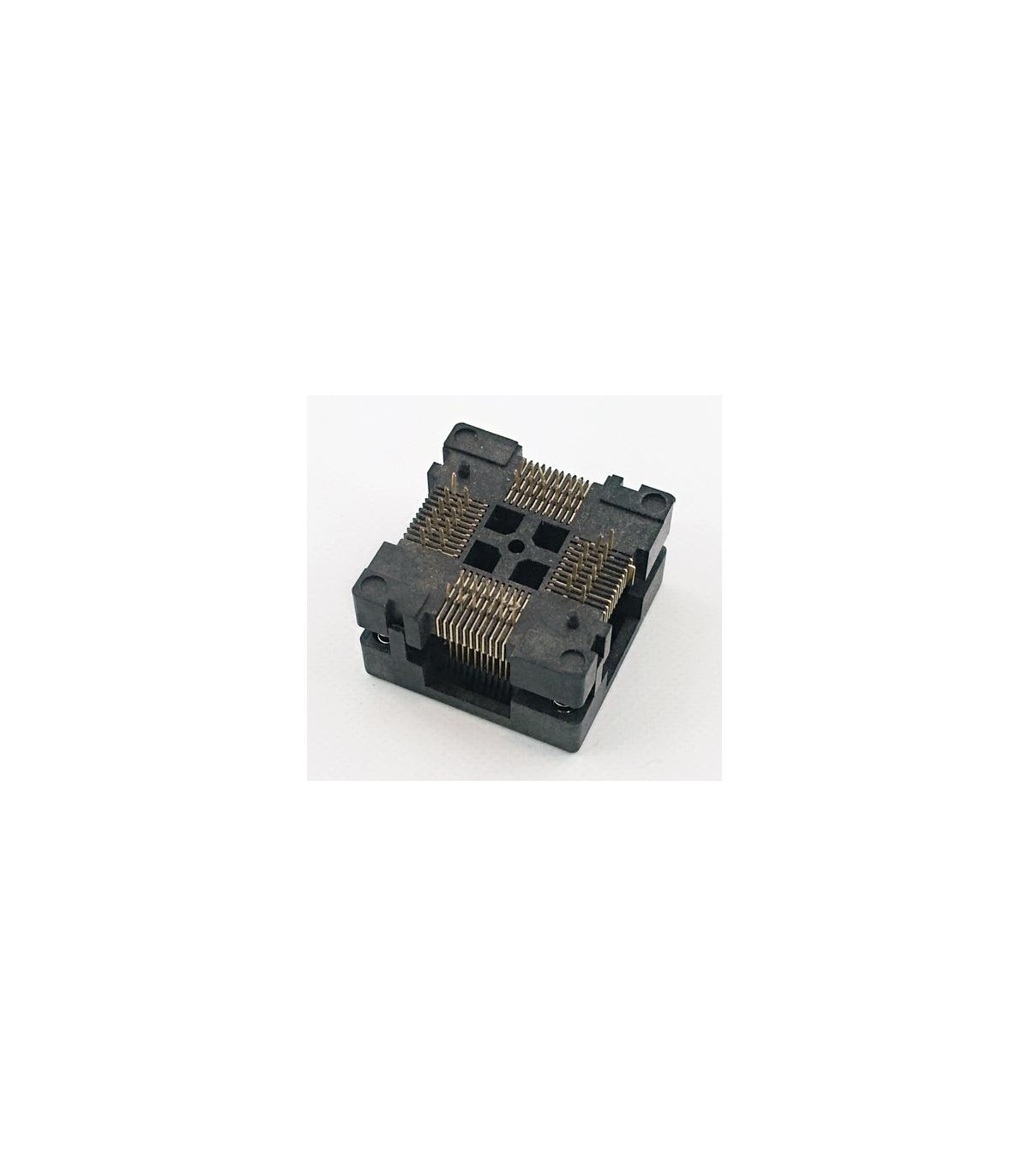 Для программирования микросхем с корпусами, отличными от DIP, используют специальные адаптеры-переходники под соответствующий тип корпуса. Одной стороной переходник устанавливается в DIP-колодку программатора, другая сторона представляет собой колодку под соответствующий тип корпуса. Данная модель используется для подключения в плату с посадочной площадкой под микросхемы, исполненных в корпусах TQFP44, QFP44.