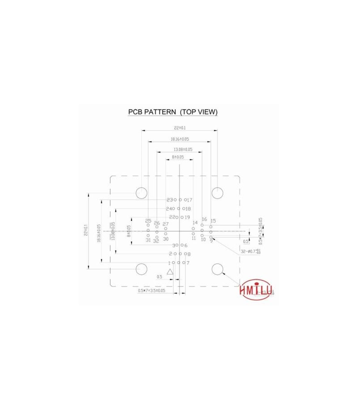 Технические характеристики Посадочная площадка: сокет из 32 выводов для уставновки микросхемы в корпусе TQFP32 QFP32 LQFP32 Расстояние между выводами в ряду: 0,5 мм Размер: можно посмотреть в даташите по ссылке ниже