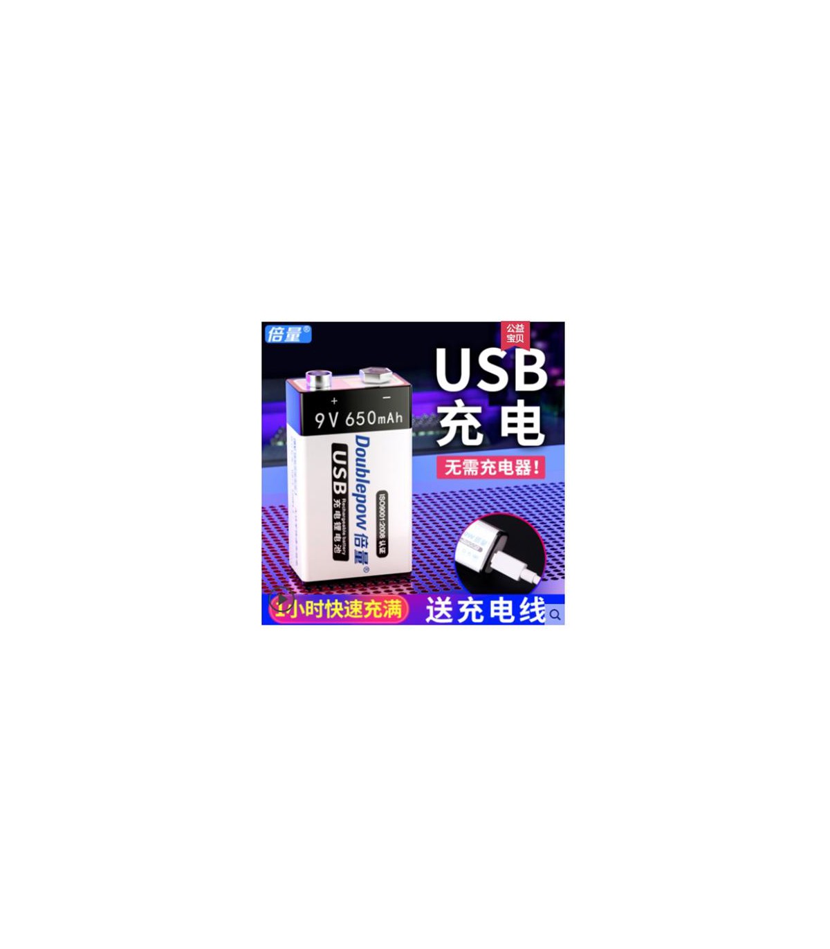 Крона перезаряжаема от micro usb Doublepow Li-Ion 9V 650mAh.