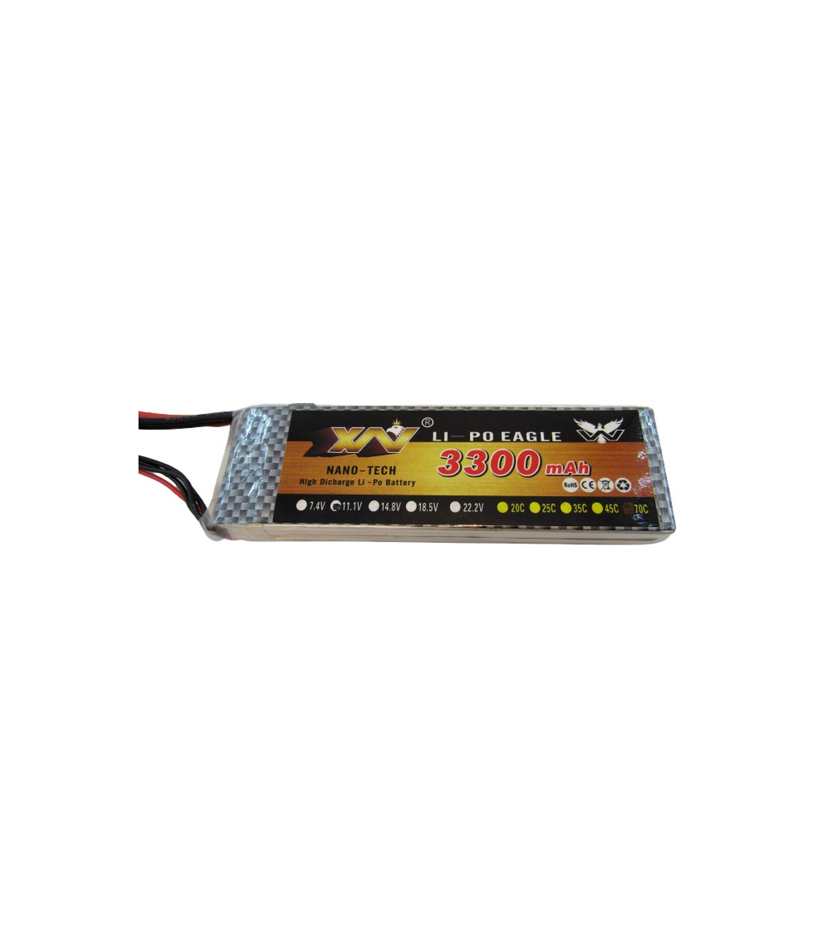 Аккумулятор квадрокоптера LiPo 11.1V 70C 3300mah 3S XT60 207г 135*43*18.5мм.