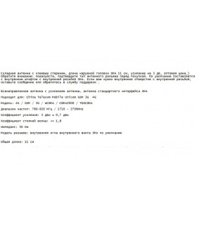 Внешняя антенна LTE GSM 4G GPRS 868MHz 3dBi. Подходит для всех устройств Модель: 4G / GSM / 3G / WCDMA / CDMA2000 / TDSCDMA Диапазон частот: 780-920 МГц / 1710 - 2700MHz Коэффициент усиления: 3 дБи ± 0,7 дБи...