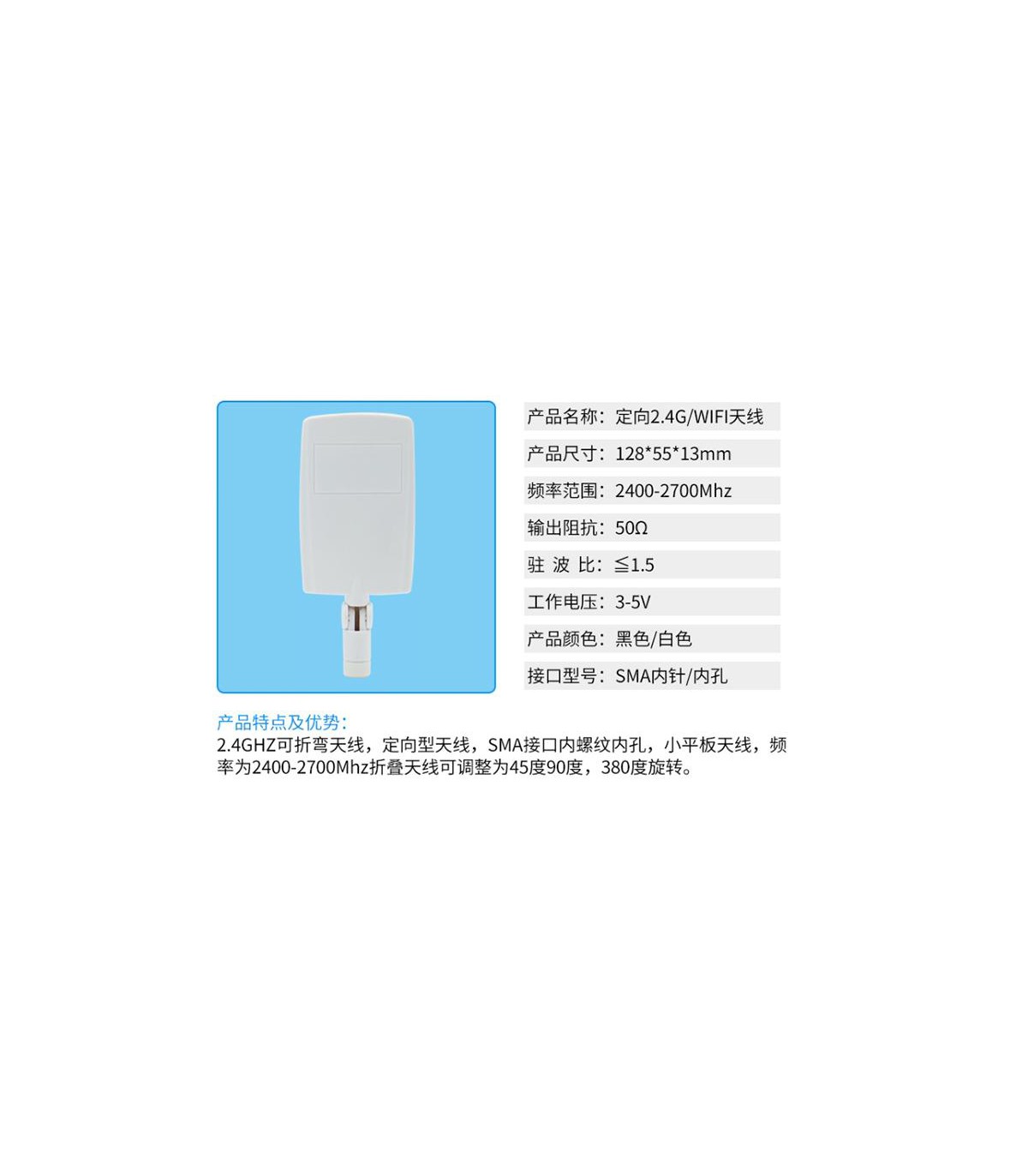 Всенаправленная антенна радар Wi-Fi 2.4G 8dBi SMA. Основные технические характеристики Частота: 2400-2700 МГц Усиление 8 дБи Режим работы: всенаправленная антенна Номинальная мощность: 20 Вт Входное сопротивление: 50 Ом Размер материнской платы антенны: 12,7 * 5,5 см Тип разъема: SMA