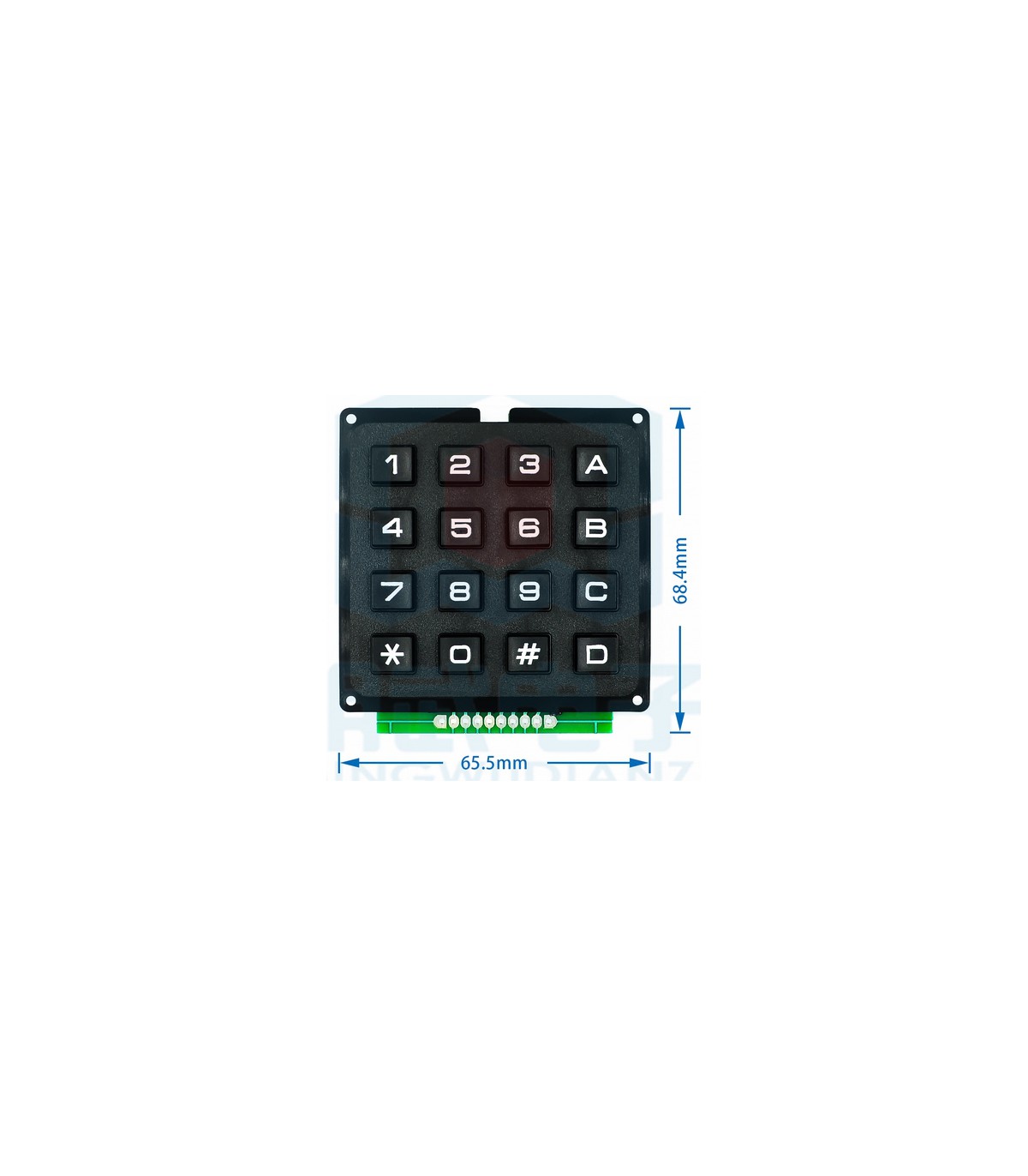Матрична клавіатура складається з 16 кнопок (4 шпальти × 4 рядки), серед яких 10 цифр, 4 букви, * і #. Висновки клавіатури підключені до 8-контактного роз'єму PLS-8 (крок висновків - стандартний, 2,54 мм). Шлейф між...