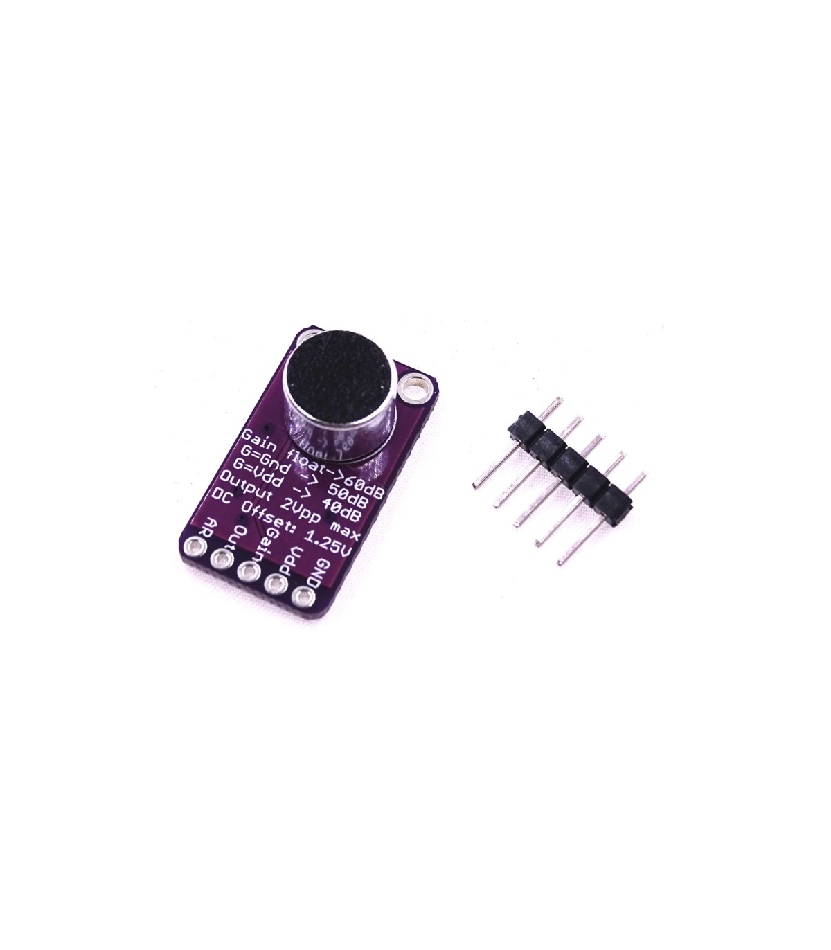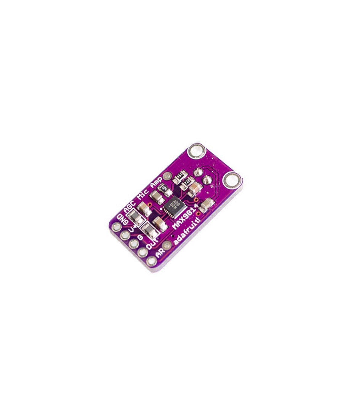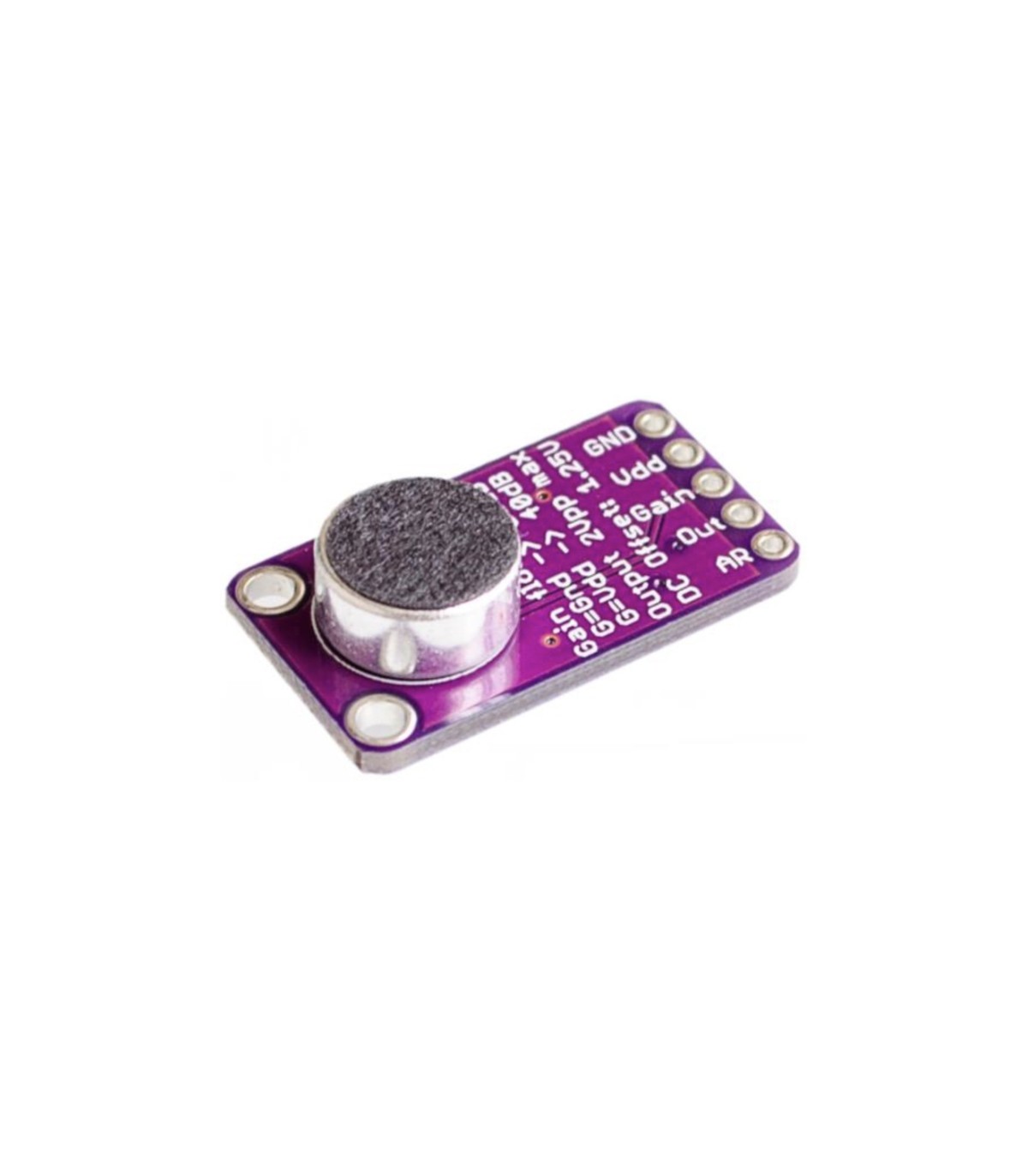 Модуль электретного микрофона MAX9814 для Arduino.Высокочувствительный активный микрофон на микросхеме MAX4466 от компании Maxim Integrated.В модуле установлен подстроечный резистор, для регулировки усиления.Информация от производителя