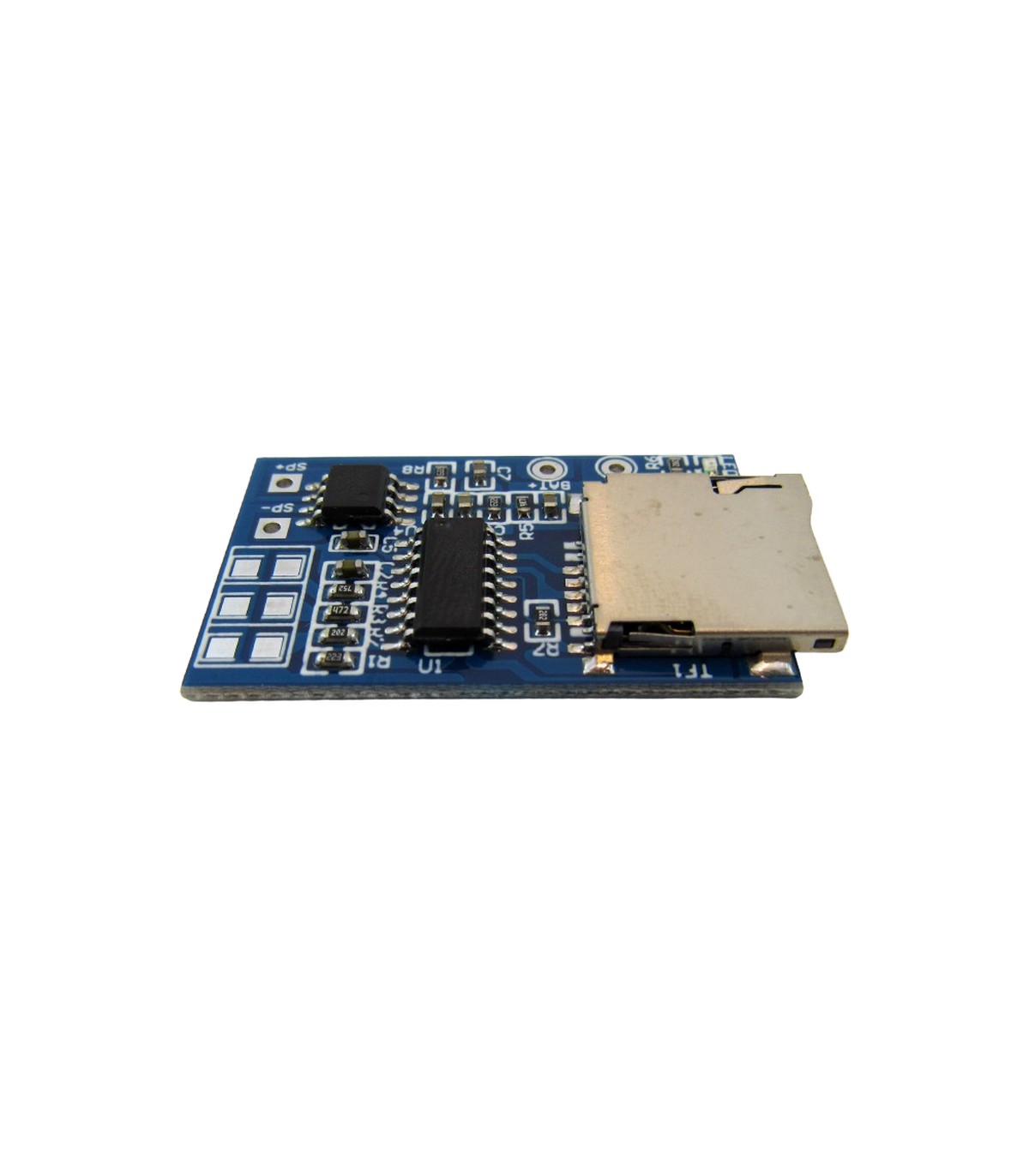 Модуль TF-карта GPD2846A MP3-декодер плата 2Вт модуль усилителя для Arduino.Аудио модуль MP3-плеер GPD2846A microSD - полнофункциональные модуль MP3-плеер позволяет воспроизводить аудиофайлы с SD-карт памяти. Встроенный 2 Вт усилитель. Можно питать как и на вход 5 В, так и от аккумулятора 3.7 на вход BAT +.ХАРАКТЕРИСТИКИОбъем поддерживаемых карт: 512 Мб - 16 Гб,Напряжение питания: 3,7-5 В,Выходная мощность: 2 Вт, смешанная, моно,Размеры платы: 38 мм x 22 мм,Чип: GPD2856 или аналогичный.Информация от производителя