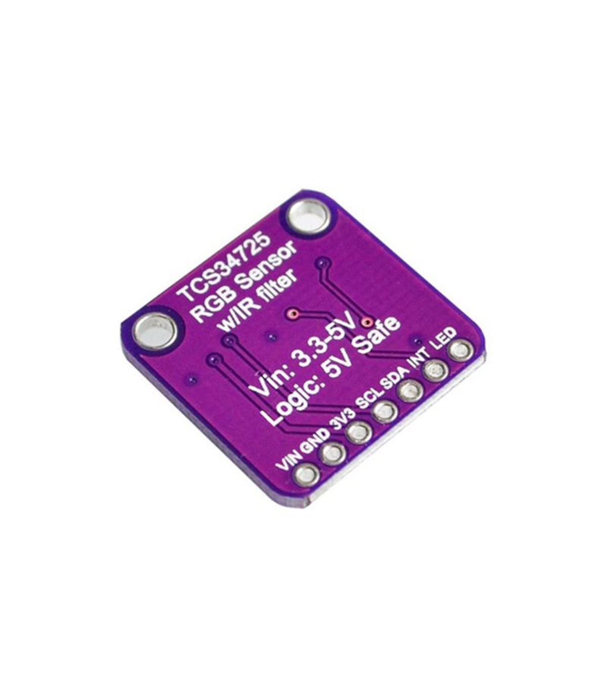 Модуль макетной платы RGB с датчиком цвета TCS34725 Arduino.TCS34725 — датчик цвета с инфракрасным фильтром позволяет различать цвета окружающих предметов, цветовую температуру по Кельвину, освещенность в люксах.Технические характеристики:Напряжение питания: 3.3 - 5 Вольт Потребляемый ток: 330 мкА (макс)Время преобразований: от 2.4 мс до 700 мсИнтерфейс: I2CРазмеры: 20х20 мм.