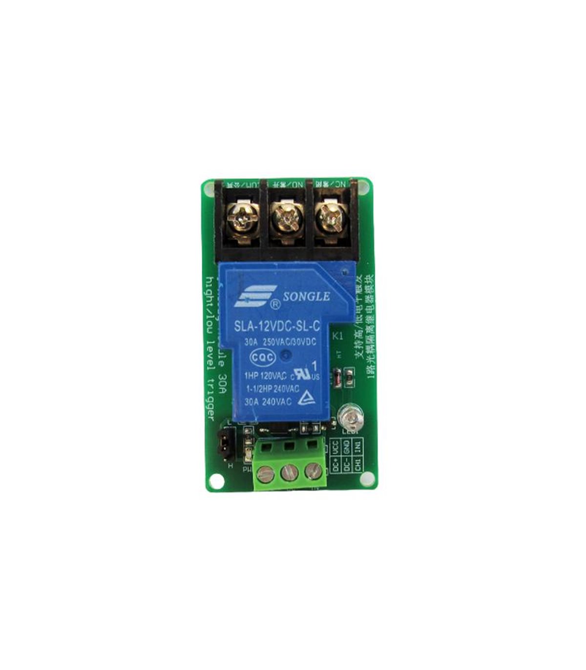 Одноканальный релейный модуль 12v 30AХарактеристики:Рабочий ток: 30АРабочее напряжение: 12ВМодуль может быть активирован перемычкой для установки высокого или низкого уровня.Подключение через клеммники