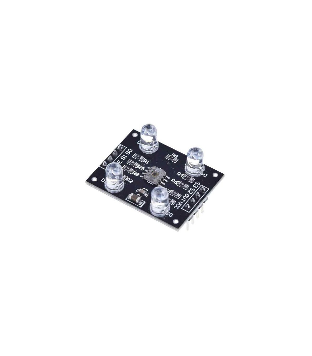 Модуль TCS3200 - это RGB датчик цвета, преобразующий данные о цвете объекта в электрический сигнал с изменяющейся частотой. Используемый чип - TCS3200 имеет светочувствительные ячейки с фильтрами четырех типов: RGB и прозрачный (без фильтра), что позволяет перекрыть весь видимый человеческим глазом спектр. Технические характеристики Рабочее напряжение: 2.7 - 5.5В Выходной сигнал: частотный Рабочая температура: -40...85°C Размеры модуля: 31 х 24 мм