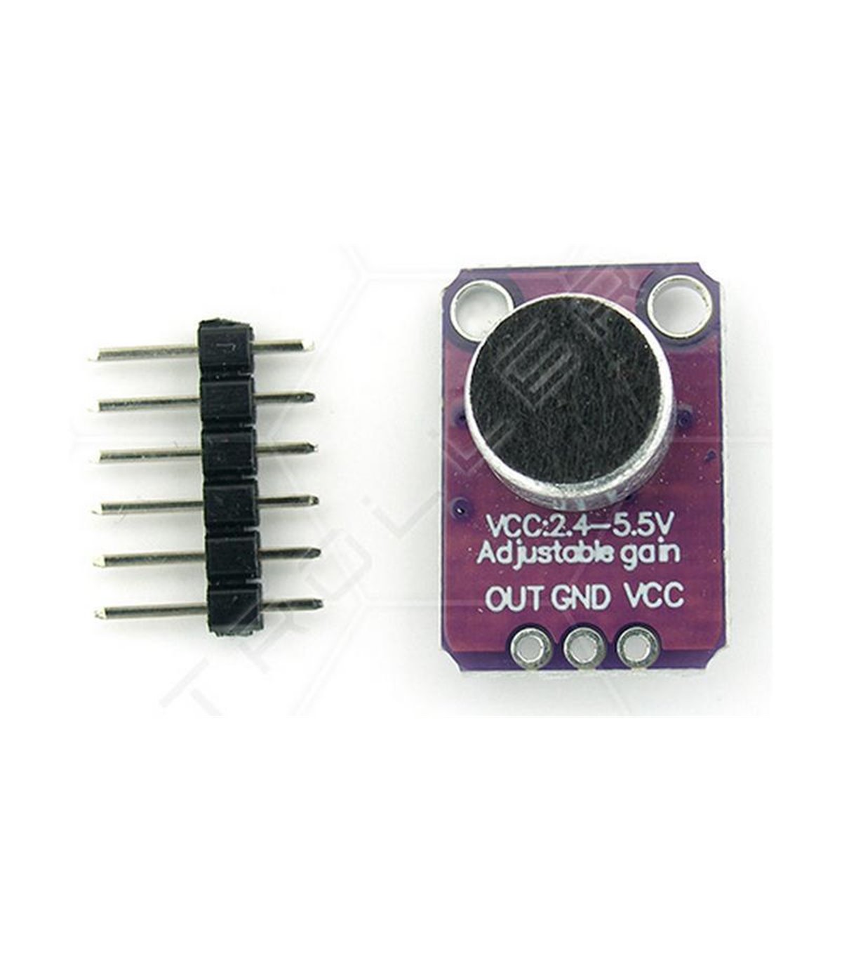 характеристики: Рабочее напряжение: 2.4 ... 5.5 В Используемый усилитель: MAX4466 Тип микрофона: электретный Температурный диапазон: -40 ° C .. + 85 ° C Размеры модуля: 20х14 мм