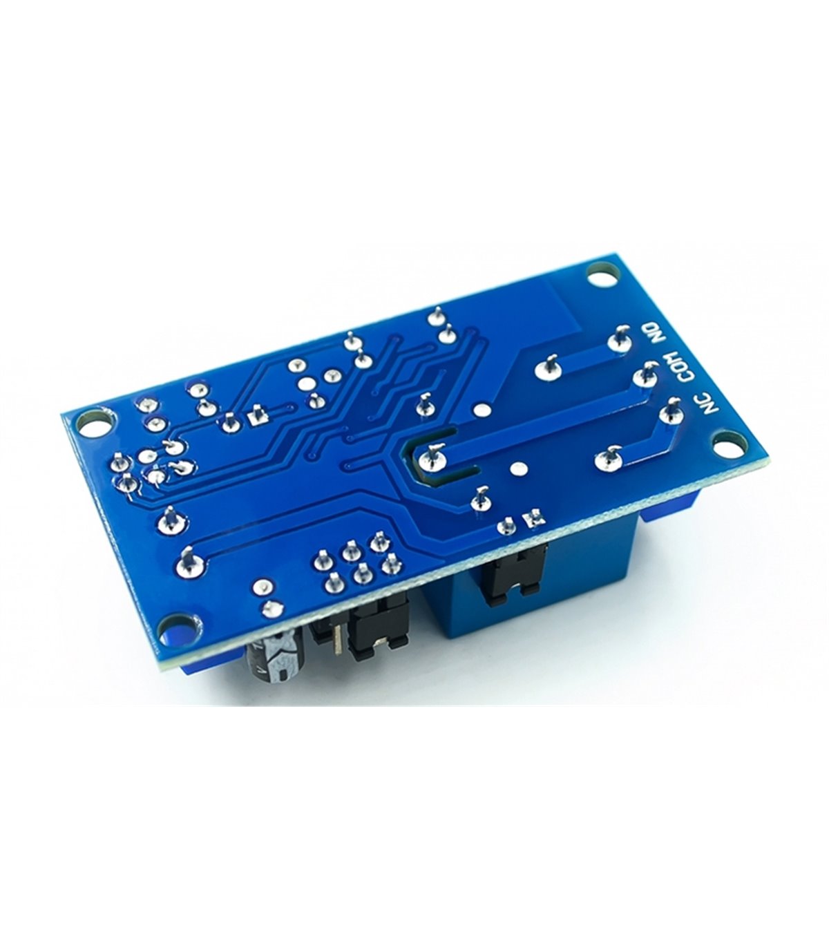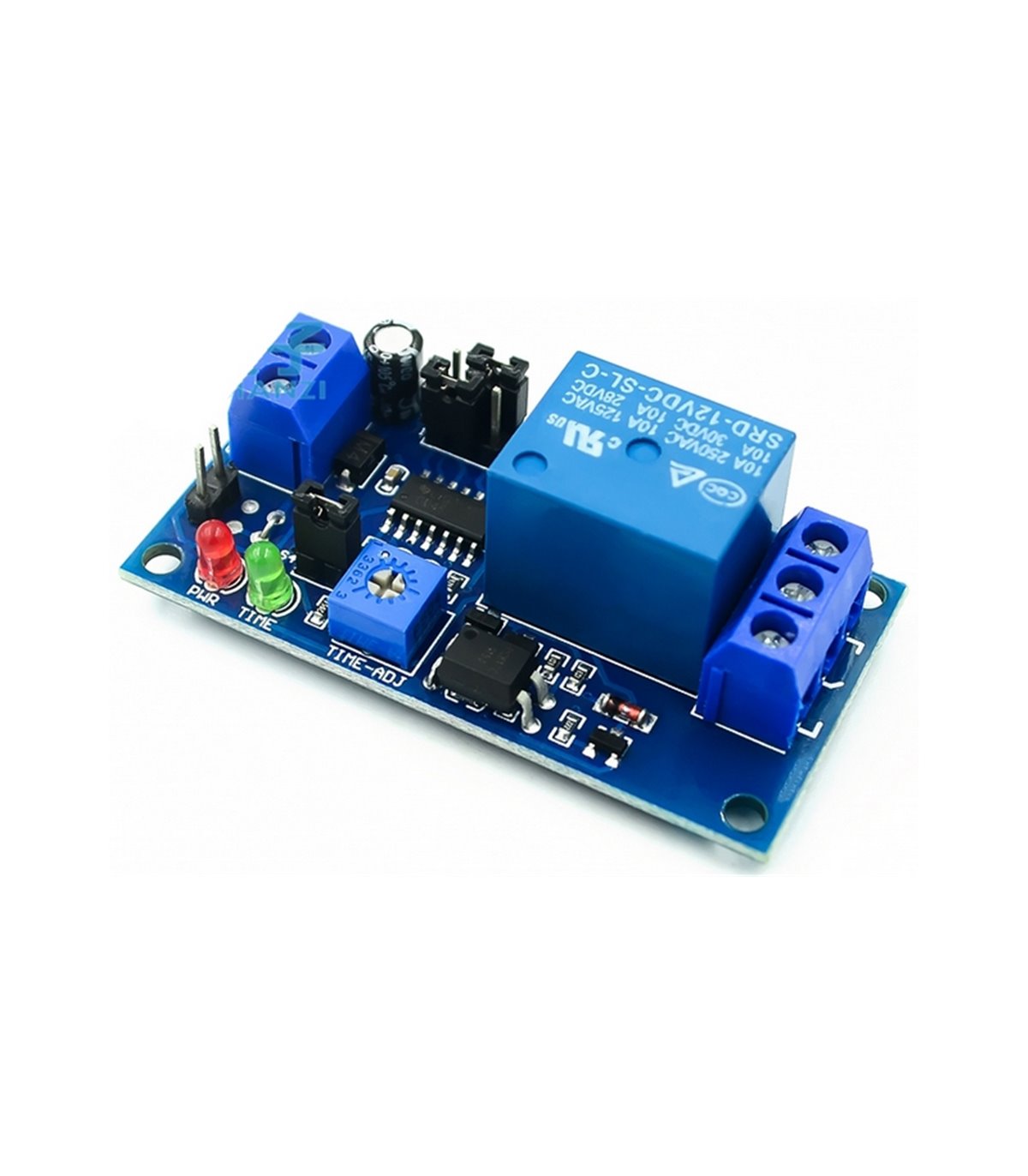 Реле задержки 12V с потенциометром.Реле задержки 12V включения или выключения 0.1 - 999 секунд.Реле задержки 12V включения или выключения применяется для управления двигателя, ламп, светодиодных модулей, мини-насосов и др.Питание релейной модуля осуществляется от внешних источников питания (блоков питания, батарей).Реле задержки 12V включения или выключения 0.1 - 999 после подачи напряжения на управляющий контакт можно включать и выключать нагрузку с задержкой, которую Вы задаете. Время задержки можно задать от 0.1 секунды до 999 секунд это около 16.5 минут