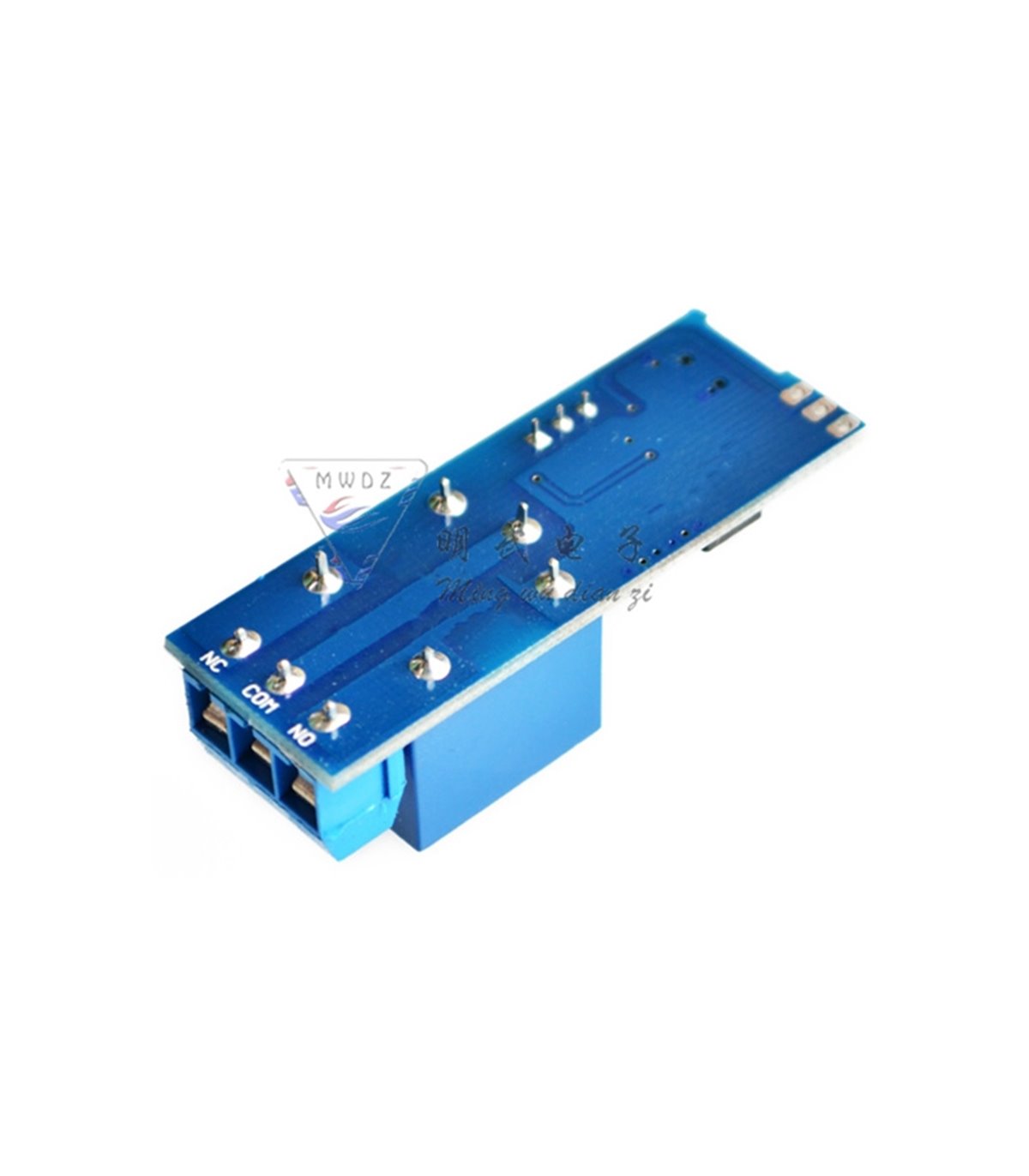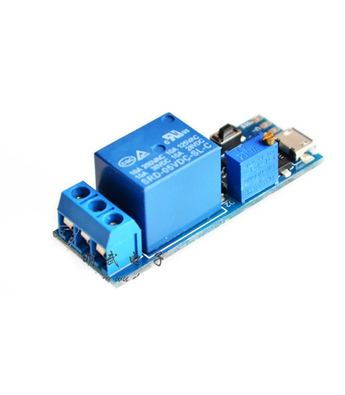 1-канальный модуль реле 5-30V с настраиваемой задержкой используется для управления различными приборами с большим входным током. При подаче низкого уровня на вход TRIG или нажатии кнопки, реле срабатывает, отсчитывает время, установленное подстроечным резистором и отключается.