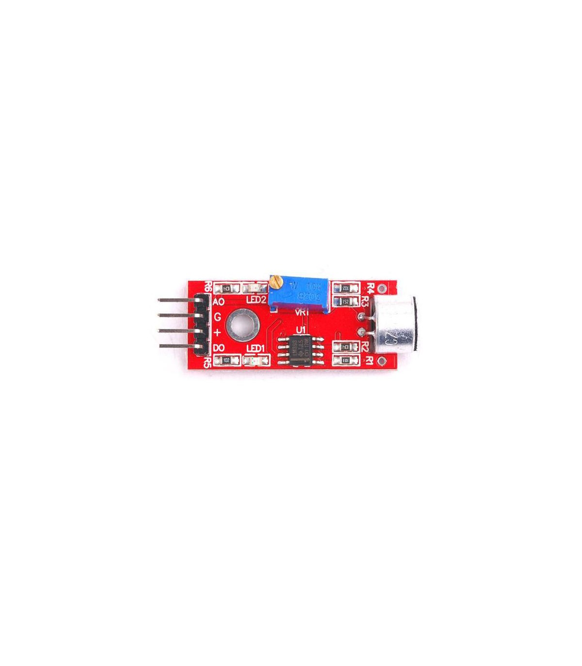 KY-037 модуль микрофона с высокой чувствительностью, имеет 2 выхода: цифровой и аналоговый, может использоваться с Arduino. Модуль микрофона высокой чувствительности. Отлично подходит для датчика обнаружения присутсвия.Уровень срабатывания регулируется подстроечным резистором. Подключение D0 — цифровой выход «+» — питание “+5 В” «G» — общий A0 — аналоговый выход Технические характеристики Питание: 3.5-5.5V Размер: 34 x 16 мм