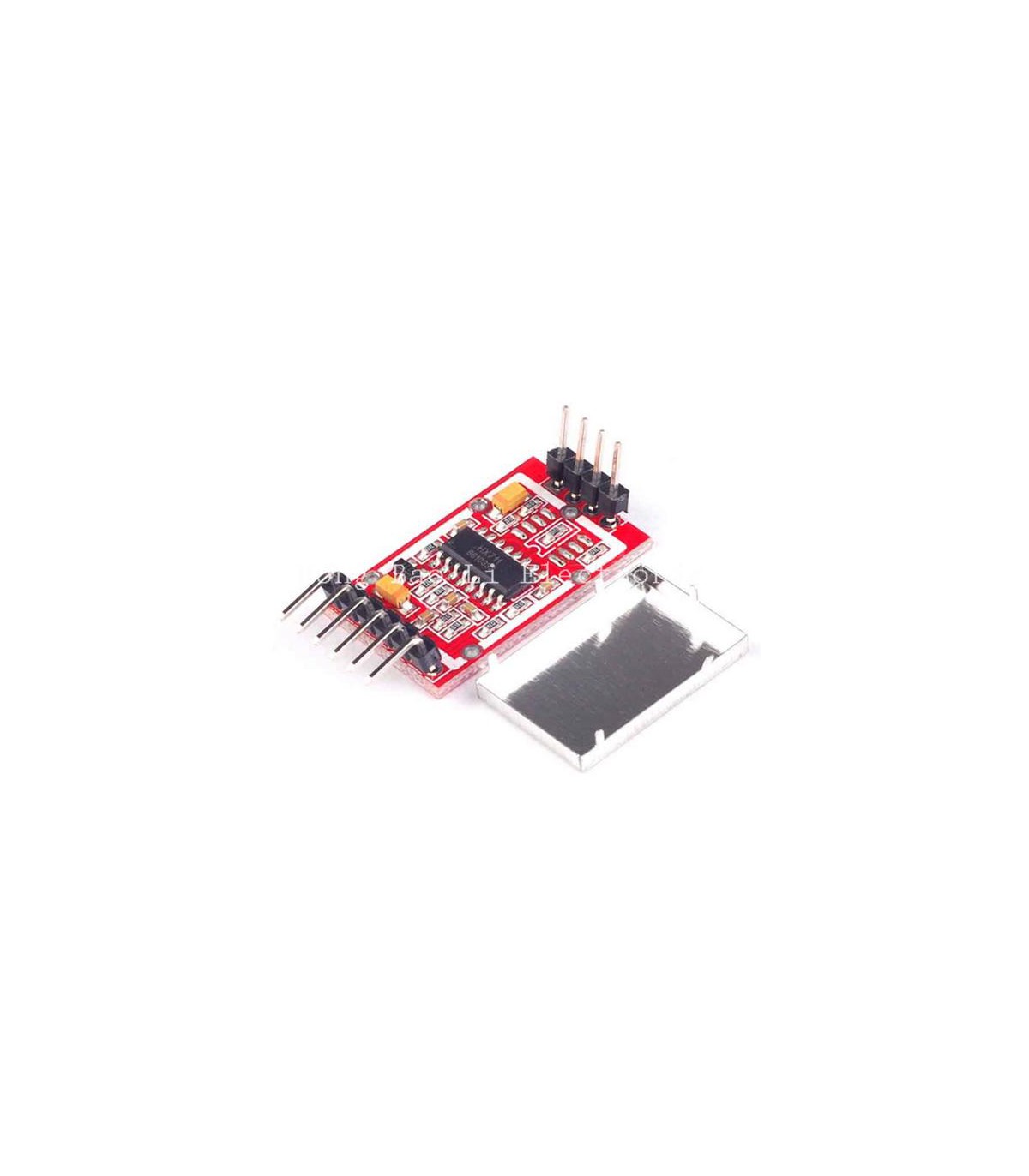 Тензодатчик 24-разрядный АЦП HX711AD с экранированием. 24-битный аналого-цифровой преобразователь для создания электронных цифровых весов. Два выбираемых дифференциальных входа Коэфициент усиления: 32, 64, 128 Скорость передачи данных: 10 или 80 Гц Не требует дополнительного кварцевого резонатора Рабочее напряжение: 2.6-5.5 В В отличии от мини версии имеет 2 монтажных отверстия диаметром 3 мм Размер платы: 3.4 х 2 см