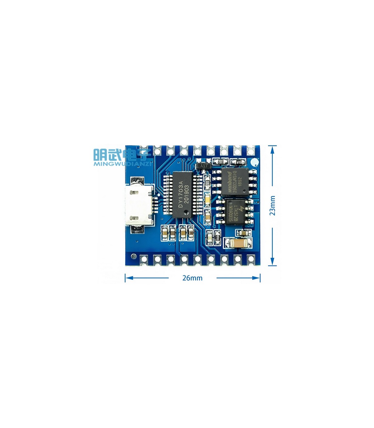 Встроенная схема усилителя 5 Вт класса D и может напрямую управлять динамиками мощностью 4 Ом 3 ~ 5 Вт. Поддержка формата декодирования MP3, WAV.