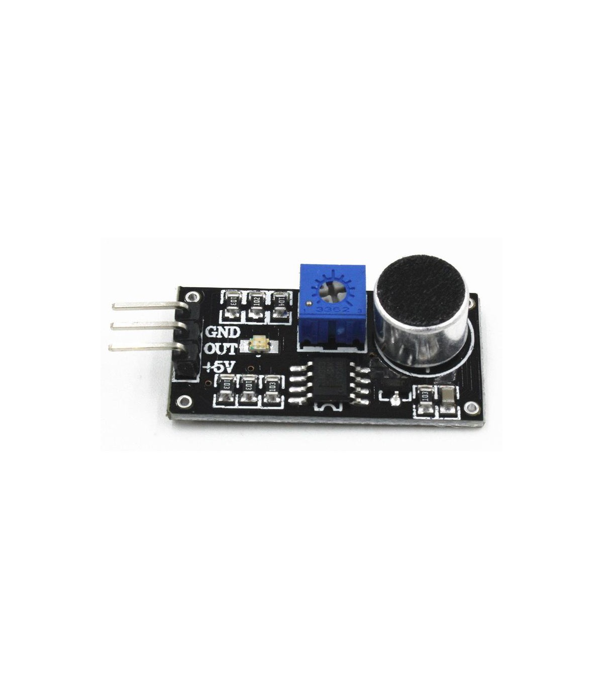 Датчик звука или акустический сенсор модуль для Arduino AVR PIC. Регулируемая чувствительность микрофона. Этот небольшой модуль представляет из себя микрофон со стократным операционным усилителем, который может усилить звуки голоса, стука в дверь и прочие звуки до необходимого уровня, способного быть принятым АЦП микроконтроллера (аналоговым входом). Технические характеристики Напряжение питания звукового датчика: +2,7 В … 5,5 В Рекомендуемое напряжение: 4-6 В Потребляемый ток: 1,4 – 1,5 мА Интерфейс или тип выходного сигнала датчика звука: цифровой TTL Цифровой выход сигнала: рабочее напряжение на выходе 5 В Подключается непосредственно к микроконтроллеру Рабочая температура: от -30°C … +85°C Размеры модуля звука (длина x ширина x высота): 47 x 18,4 x 10 мм