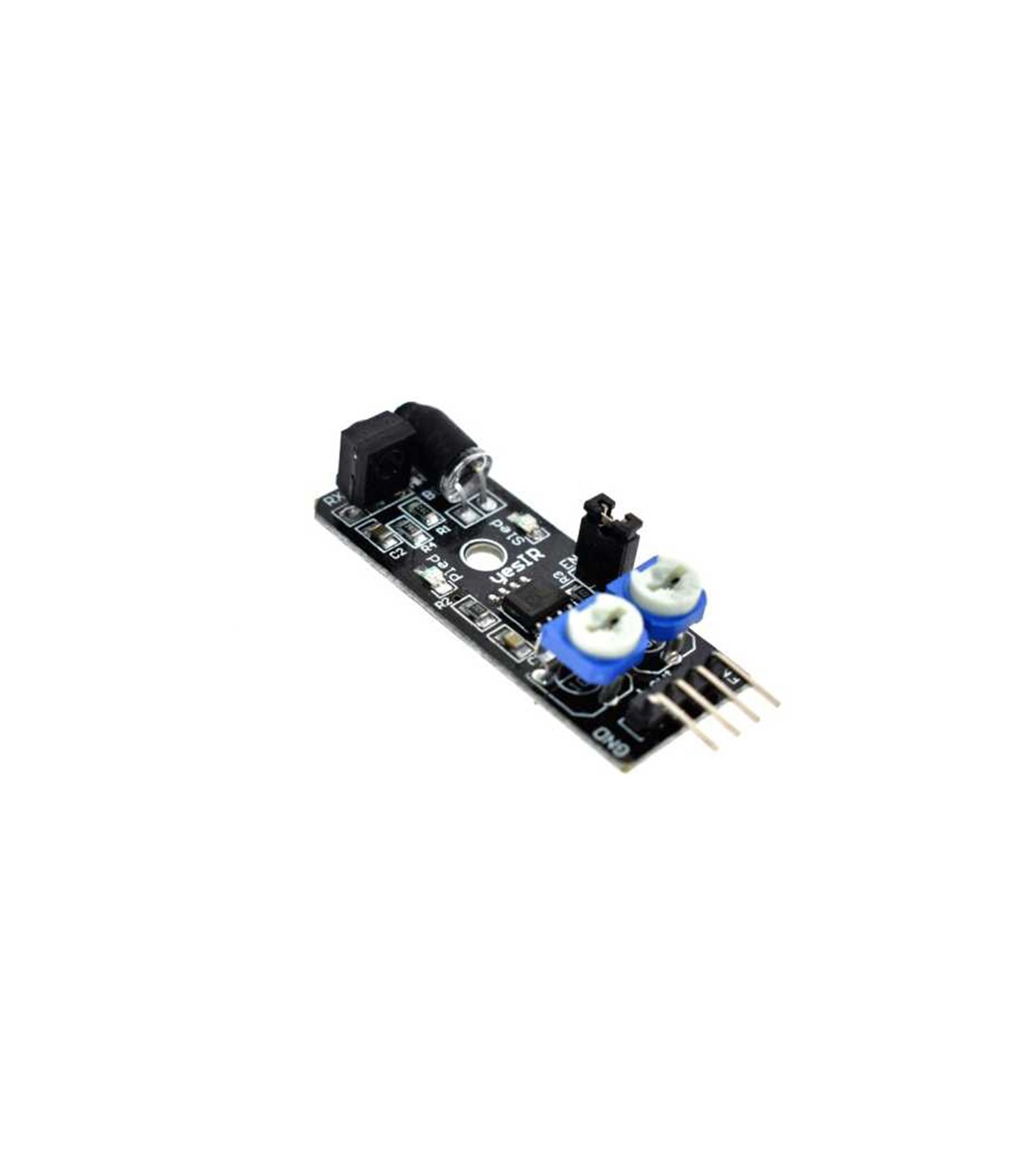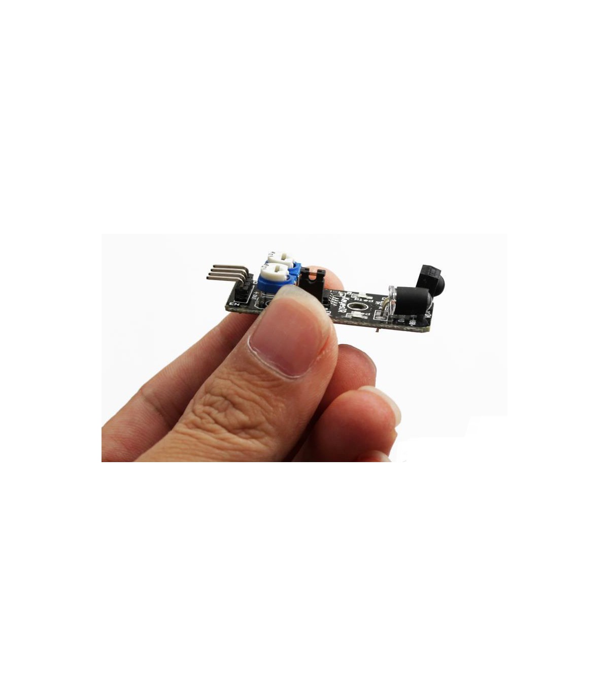 Инфракрасный датчик препятствий KY-032 (sensor IR-08H). Оснащен двумя полупроводниковыми фотоэлементами: светодиодом ИК - излучения и фотоприемником. Излучения светодиода отражается от препятствия и приходит на фотоприемник. Датчик KY-032 реагирует на отражение ИК излучения в контролируемой зоне, которая регулируется потенциометром. Когда объект оказывается в пределах настроенного расстояния, на плате KY-032 загорается светодиод.