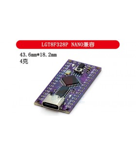 Плата контроллер LGT8F328P LQFP32 MiniEVB Arduino NANO V3.0. Клон Arduino NANO на чипе LGT8F328P от компании LogicGreen с повышенной тактовой частотой до 32МГц как от внутреннего PLL-синтезатора, так и от кварцевого...