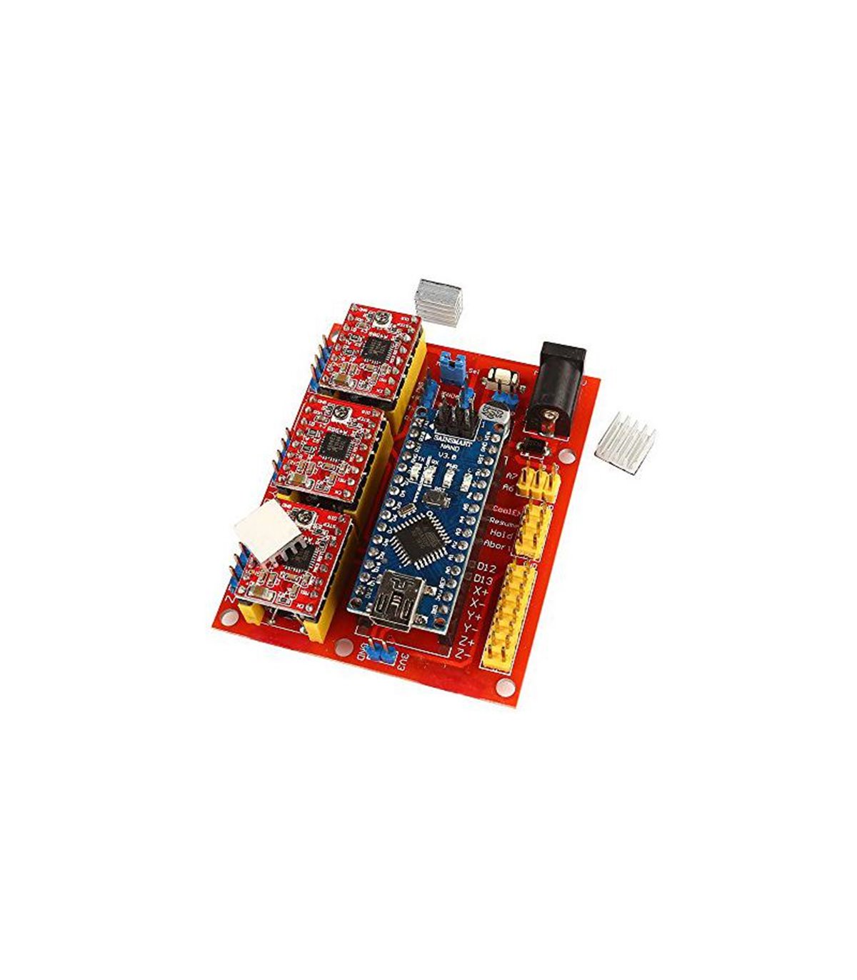 Плата расширения ЧПУ Arduino Nano CNC Shield v4.0 используется для создания на основе контроллера Arduino Nano (других контроллеров совместимых по типоразмеру) станков с числовым программным управлением, 3D принтеров, гравировальной или фрезерной машины и т.п. Плата расширения CNC Shield v4.0 может работать с Arduino Nano и драйверами двигателей с помощью программного обеспечения Arduino GRBL. Программное обеспечение обменивается информацией с «железом» с помощью G-кодов. Технические характеристики Модель: CNC Shield v4.0, Контроллер: Arduino Nano и другие совместимые, Количество осей: 3 (X, Y, Z), Напряжение питания логической части: 3,3 - 5В, Напряжение питания силовой части: 12 – 24В, Совместимые драйверы двигателей: A4988, а также другие подобные, Связь с другими устройствами: UART, I2C, Программное обеспечение: Arduino GRBL, Размеры: 72 х 59 х 20 мм, Вес: 31 г.