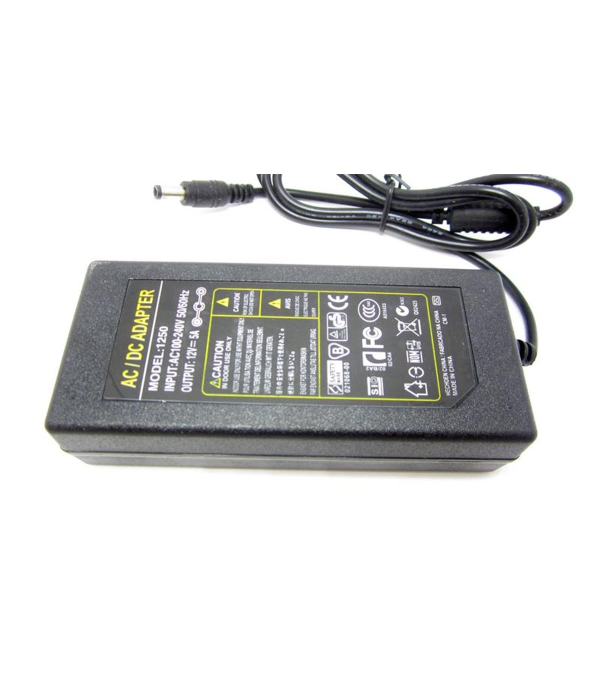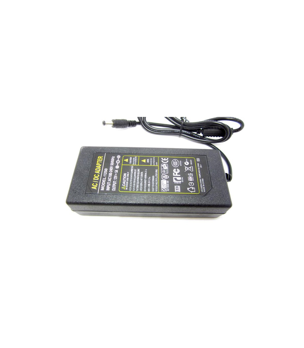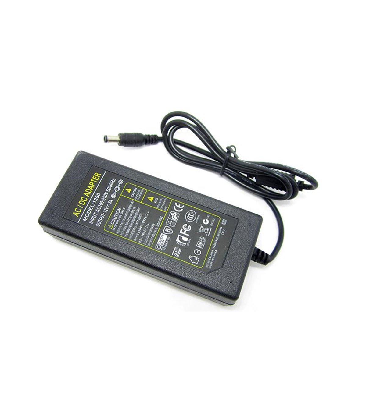 Технические характеристики Входные параметры: AC 100-240V / 50-60Hz Выходное напряжение: DC 12V Выходной ток: 5A Штекер: 5.5*2.1мм Размер корпуса: 12.5*5.5*3см Длина кабеля: 80см