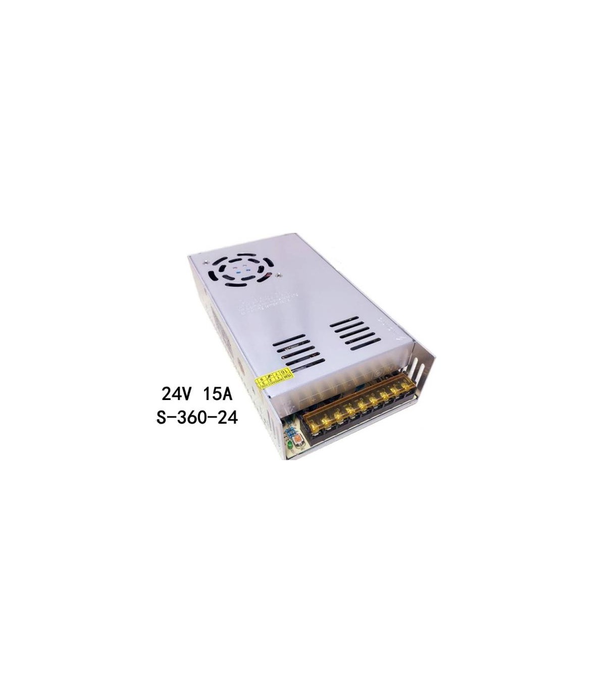 Универсальный блок питания 24V 15A S-360-24. Источник питания 24В 15А планшетного типа в металлическом корпусе. Блок питания S-360-24 24 вольта 15 Ампер 360W(ватт). Легкий и не подверженный коррозии алюминиевый корпус.