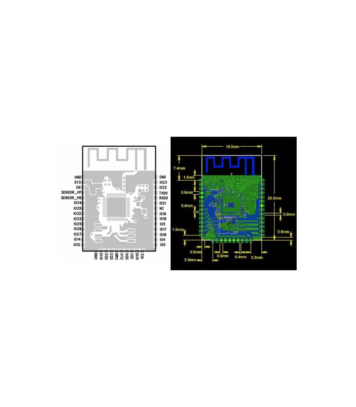 Комбинированный модуль ESP-32S Wi-Fi Bluetooth с ультра высокой производительностью и ультра низким потреблением мощности Wi-Fi и беспроводной платформы Bluetooth на базе чипсета ESPRESSIF ESP32. ESP-32S объединяет двухъядерный процессор, 448 КБайт ROM, 520 КБайт SRAM, 16 КБайт SRAM в РТК, 802.11 B / G / N / E / I Wi-Fi, Bluetooth v4.2 BR / EDR & BLE, часы & Times. ESP-32S комбинированный модуль Wi-Fi Bluetooth обеспечивает SDK встроенного программного обеспечения для быстрого онлайн-программирования и с открытым исходным кодом на основе GCC для поддержки развития.