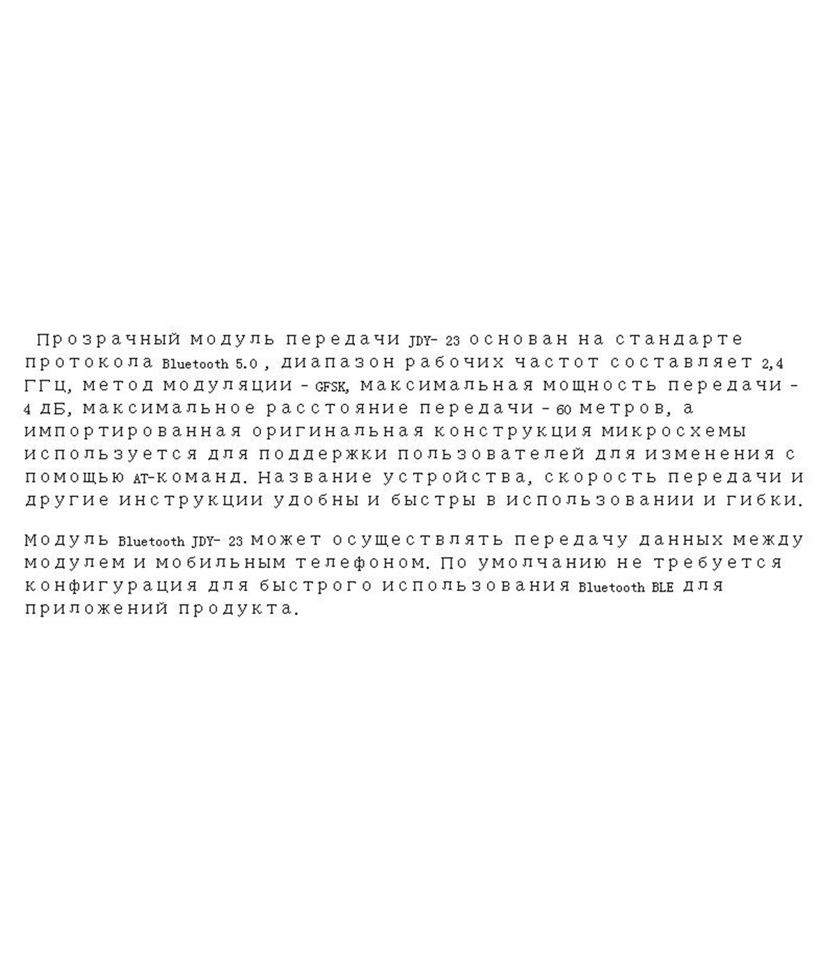 Модуль Bluetooth 5.0 JDY-23 BLE5.0 CC2541 сделан по стандарту протокола Bluetooth 4.2, поддерживает пользователей для изменения оборудования через имя команды, скорость передачи данных и другие инструкции. Удобный и быстрый в использовании гибкий. JDY-21 модуль Bluetooth может использовать модуль и мобильный телефон или модуль и модуль передачи данных, и может быстро использовать BLE Bluetooth для приложения продукта через простую настройку.