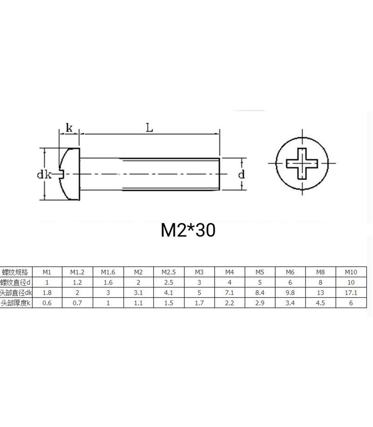Болт винт с круглой головкой M2*30мм 25шт(16664)