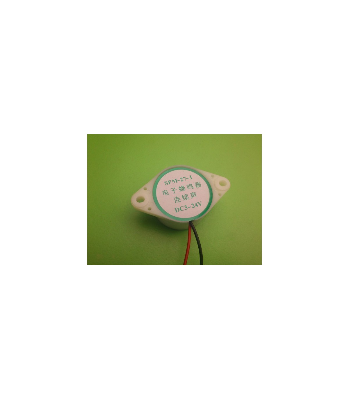 Непрерывный звуковой зуммер буззер SFM-27 DC 3-24V. Технические характеристики Модель: SFM-27-1 Номинальное напряжение: 12 В Диапазон напряжения: 3 ~ 24V Номинальный ток: - Уровень звукового давления: &gt, / = 90 дБ Резонансная частота: 3000 +/- 500 Гц Рабочая температура: -20 ~ 60 градусов Длина кабеля: 10 см Размеры: 4,6 х 3,0 х 1,5 см Вес: 39 г