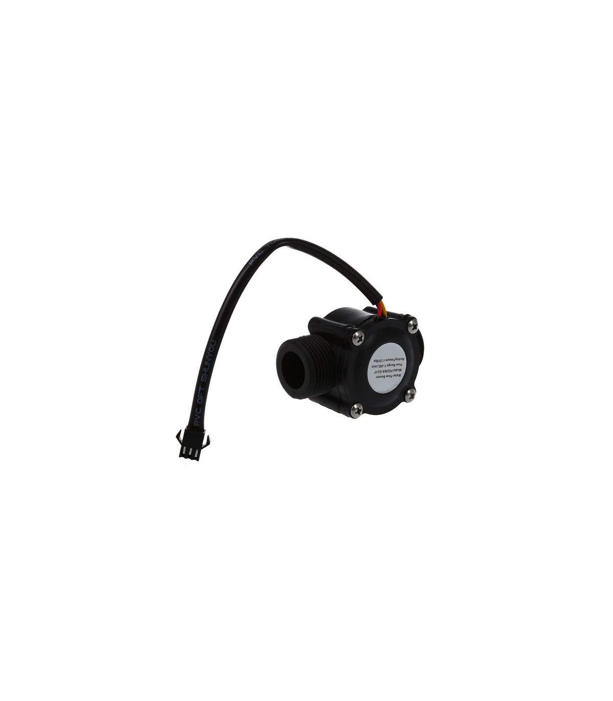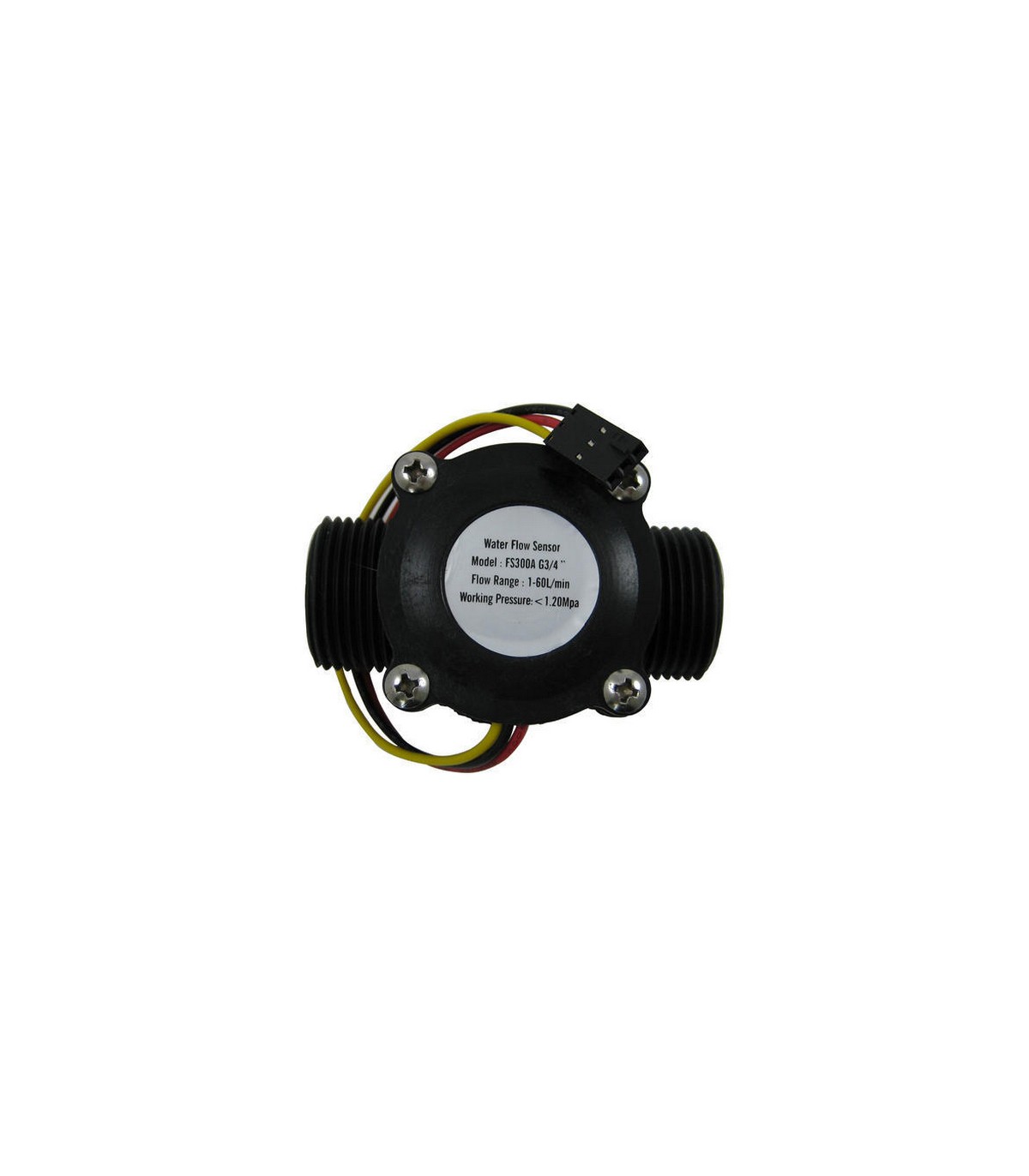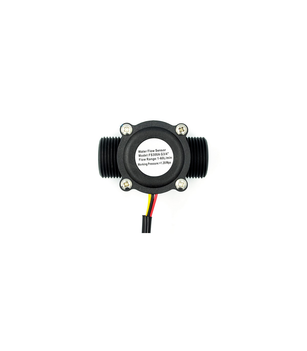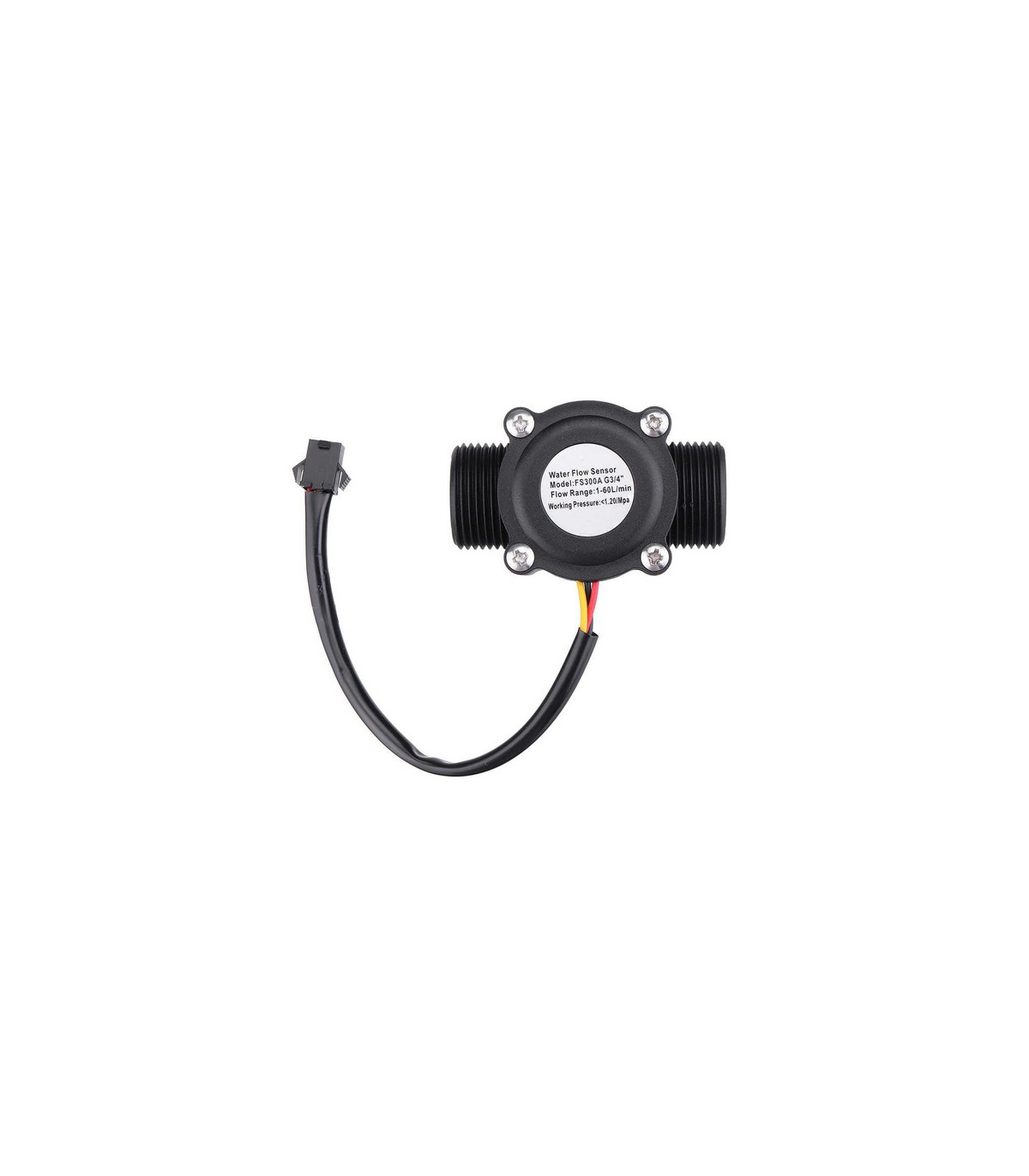Датчик потока воды состоит из пластикового клапана с двумя штуцерами с резьбой 3/4 дюйма, водного ротора и датчика Холла.