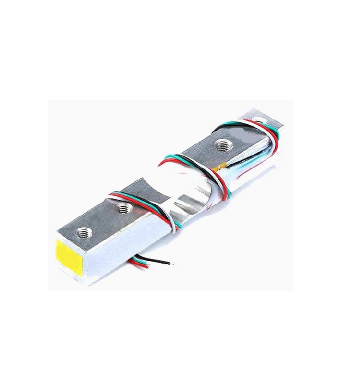 Тензометрический датчик на 1 кг для весов преобразует величину деформации в электрический сигнал. Рекомендуется использовать совместно с модулем HX711. Один конец датчика фиксируется неподвижно, а на другой конец применяется сила тяжести. Внимание! Нельзя непосредственно нажимать на часть белого покрытия резины, так, чтобы не нарушить датчик. Технические характеристики Импеданс: 1000 ± 50Ω Рекомендуемое напряжение: 5-10В Максимальный измеряемый вес: до 1 кг Размеры: 80x12.7x12.7мм Материал: алюминий Комплексная погрешность: 0,2 % FS Подключение к модулю HX711 Белый: А- Зеленый: А+ Красный: Е+ Черный: E-