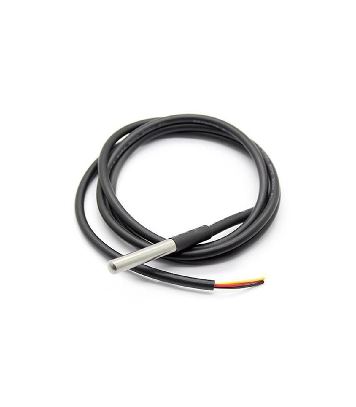 Зонд температурный DS18B20 (термометр-щуп). Зонд температурный (термометр-щуп) водонепроницаемый. Технические характеристики Датчик DS18D20+ Диапазон измеряемой температуры -55°C - +125°C, погрешность ±0,5°C на диапазоне -10°C - +85°C Интерфейс 1-wire Щуп нержавеющая сталь Диаметр 6мм, длина 50мм, длина контактной (измерительной) части 30мм Проводник ПВХ Длина - 1м Подключение Жёлтый - данные (шина 1-wire) Красный - плюс питания Чёрный - минус питания (корпус)