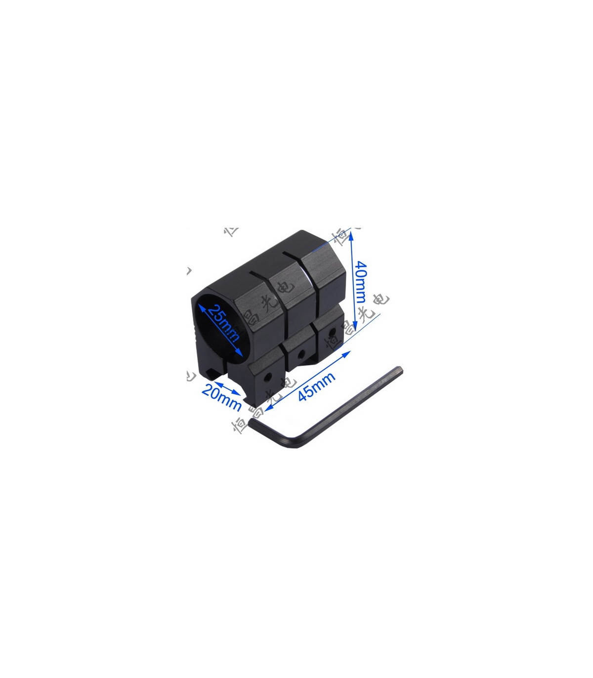 Зажим для фонарика прицела алюминий 25мм на планку 20мм.