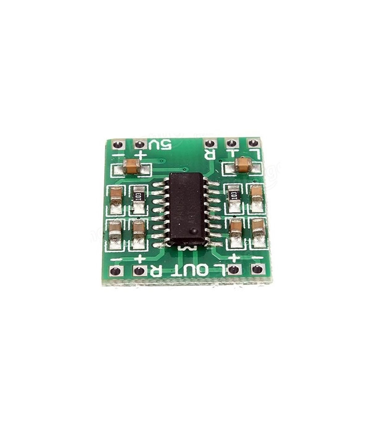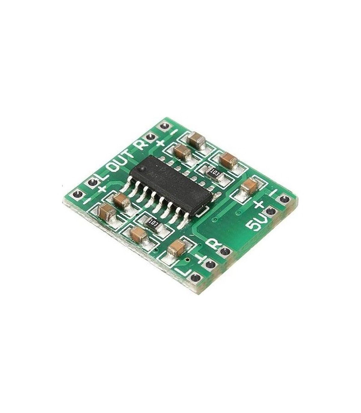Стерео аудио усилитель 2х3W D-класса на базе PAM8403. Выходная мощность 2х3Вт, при напряжении питания 5В, нагрузке 4Ом PAM8403 2х3Вт стерео усилитель D-класса. Низкий коэффициент нелинейных искажений позволяет получить высокое качество звучания при достаточной выходной мощности.