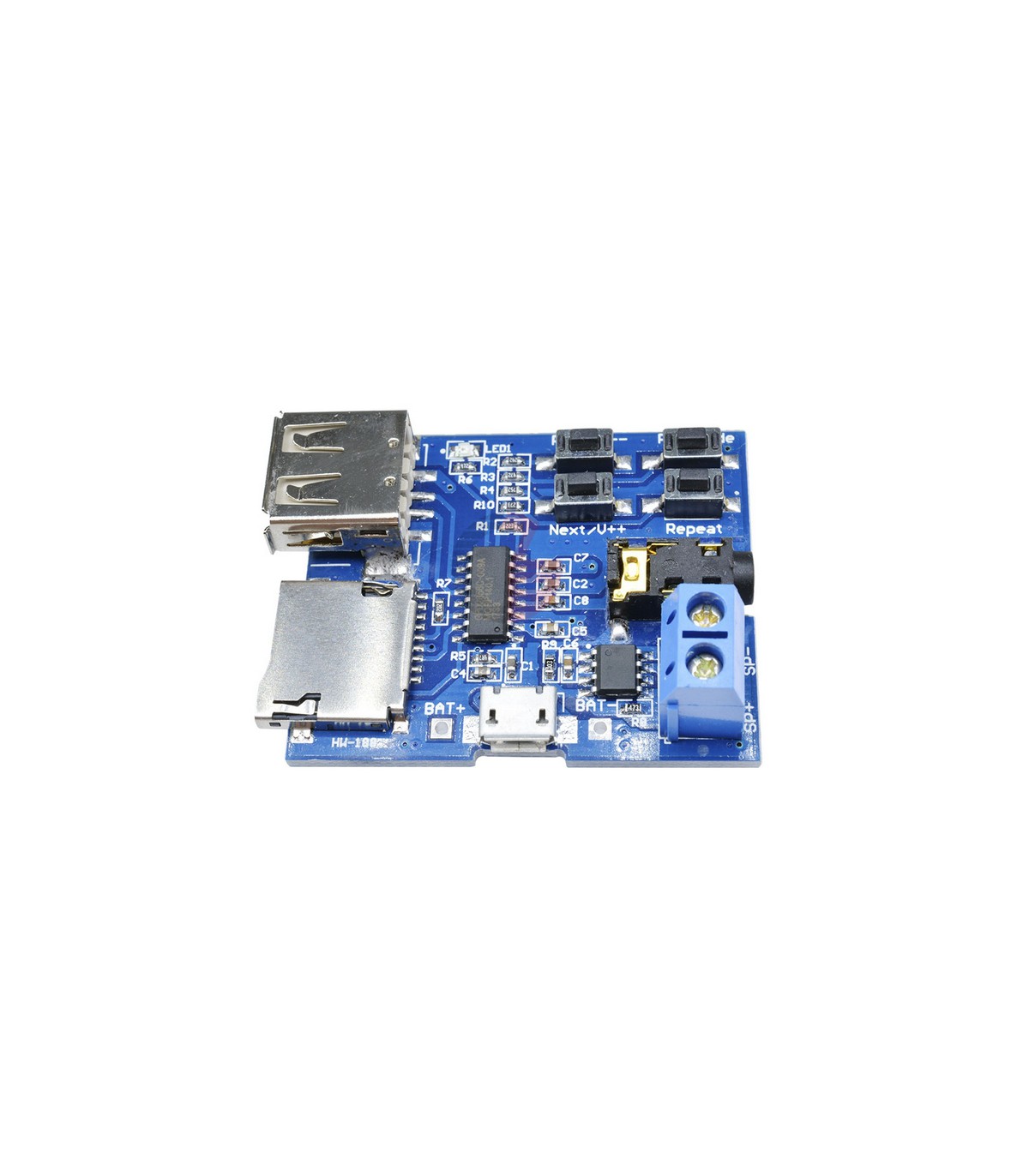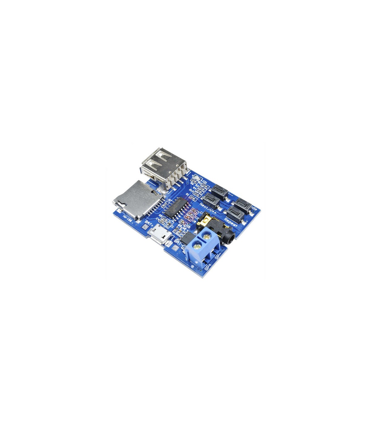 Аудио плеер MP3 с microSD картоприёмником, поддерживает внешний диск, microSD карту, возможно воспроизведение на наушники и на динамик. Разъём для наушников - 3,5 Поддержка формата MP3, при подключении питания воспроизводит автоматически. При воспроизведении Mp3 - мигает красный светодиод.