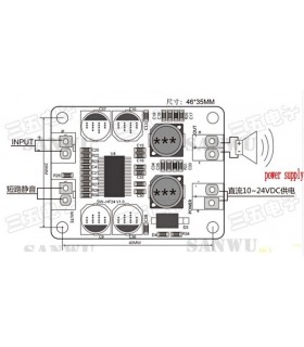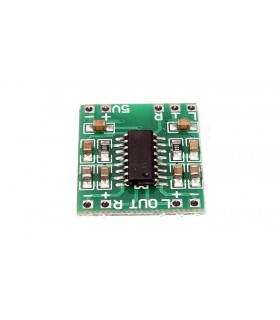 Аудиоусилитель на PAM8406 2x5W - качественный модуль стерео-усилителя звука на микросхеме PAM8406 с выходной мощностью до 5 Вт на канал при 10% искривление при сопротивлении нагрузки 8 Ом и напряжении питания 6В....