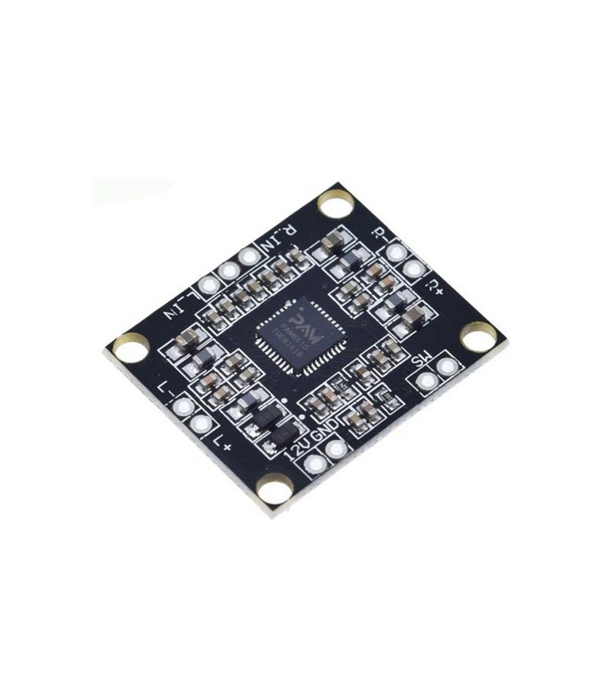 Качественный модуль стерео-усилителя звука на микросхеме PAM8610 с выходной мощностью до 10Вт при 10% искажениях при сопротивлении нагрузки 8 Ом и напряжении питания 13В. Максимальная выходная мощность может составлять до 15Вт при нагрузке 4Ом. Дополнительно выведен вход Shutdown для отключения усилителя. Низкий уровень на этом входе переводит усилитель в режим пониженного потребления при отсутствии входного сигнала. Для более экономичного отключения следует предусмотреть полное отключение напряжения питания усилителя. Технические характеристики Напряжение питания: от 7 до 15 В Максимальный потребляемый ток: 2А Класс усилителя: D КПД усилителя: до 90 % Частотный диапазон: 20 Гц - 20 кГц Входное сопротивление: 15 КОм Соотношение сигнал/шум (SNR): 86 % Гармонические искажения: <, 0.1 % Размеры платы: 30 мм х 25 мм х 2.5 мм