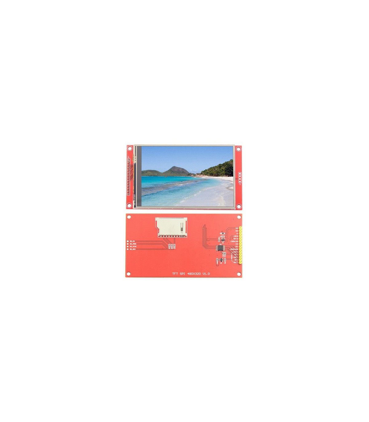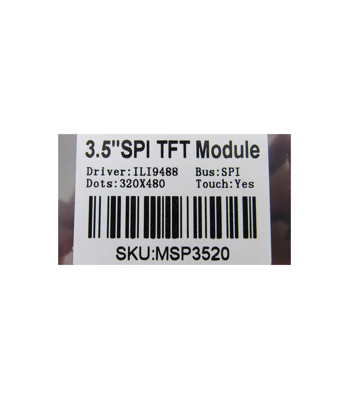 Сенсорный цветной TFT ЖК-дисплей SPI 3.5 дюйма 480*320 ILI9488.Технические характеристикиТип LCD: TFTДиагональ: 3.5'Расширение: 480х320Размер пикселя: 0,2025х0,2025ммИнтерфейс: SPI (CS, RS, SCL, SDA, RST)Драйвер TFT: ILI9488Контроллер резистивного сенсора: XPT2046Количество цветов: RGB 65K colorТип подсветки: LED (6 светодиодов)Яркость: 300cd/m2Встроенный слот для SD-картыНапряжение питания: 3,3-5ВНапряжение логических уровней: 3,3ВРазмер модуля: 56.3x98ммРабочая температура: -20℃...+60℃