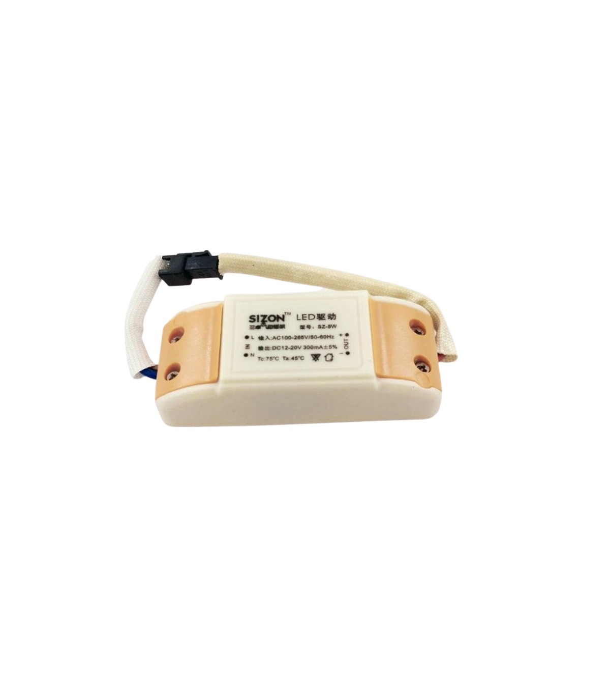 Драйвер светодиодов LED SZ 5W. Технические характеристики Входное напряжение: AC 100-220V Выходное напряжение: DC 12-20V Частота: 50-60Hz Ток: 300mA