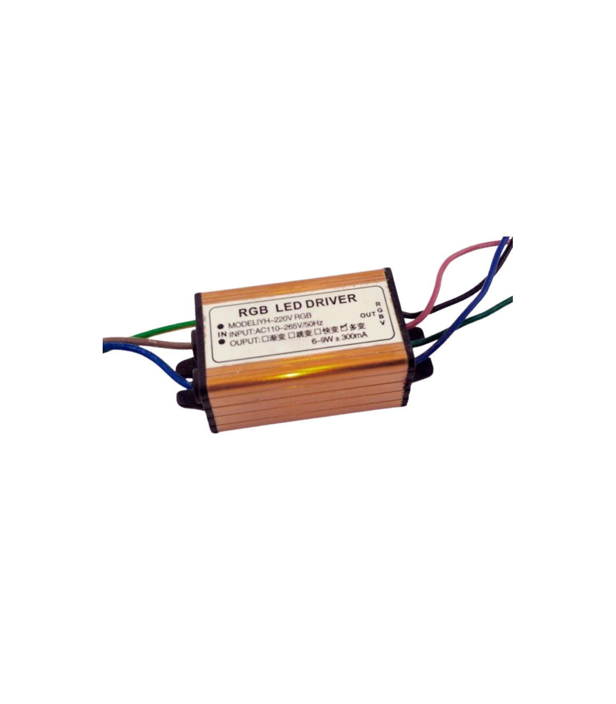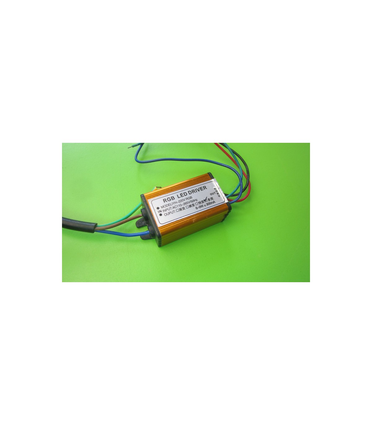 RGB драйвер светодиодов 6-9W 300mA. Технические характеристики Модель: YH-220V RGB Мощность: 6-9W Входное напряжение: AC 110-265 V Частота: 50 Гц Выходное напряжение: DC 8-12 V Выходной ток: 300 mA Размер: 50*30*20 мм