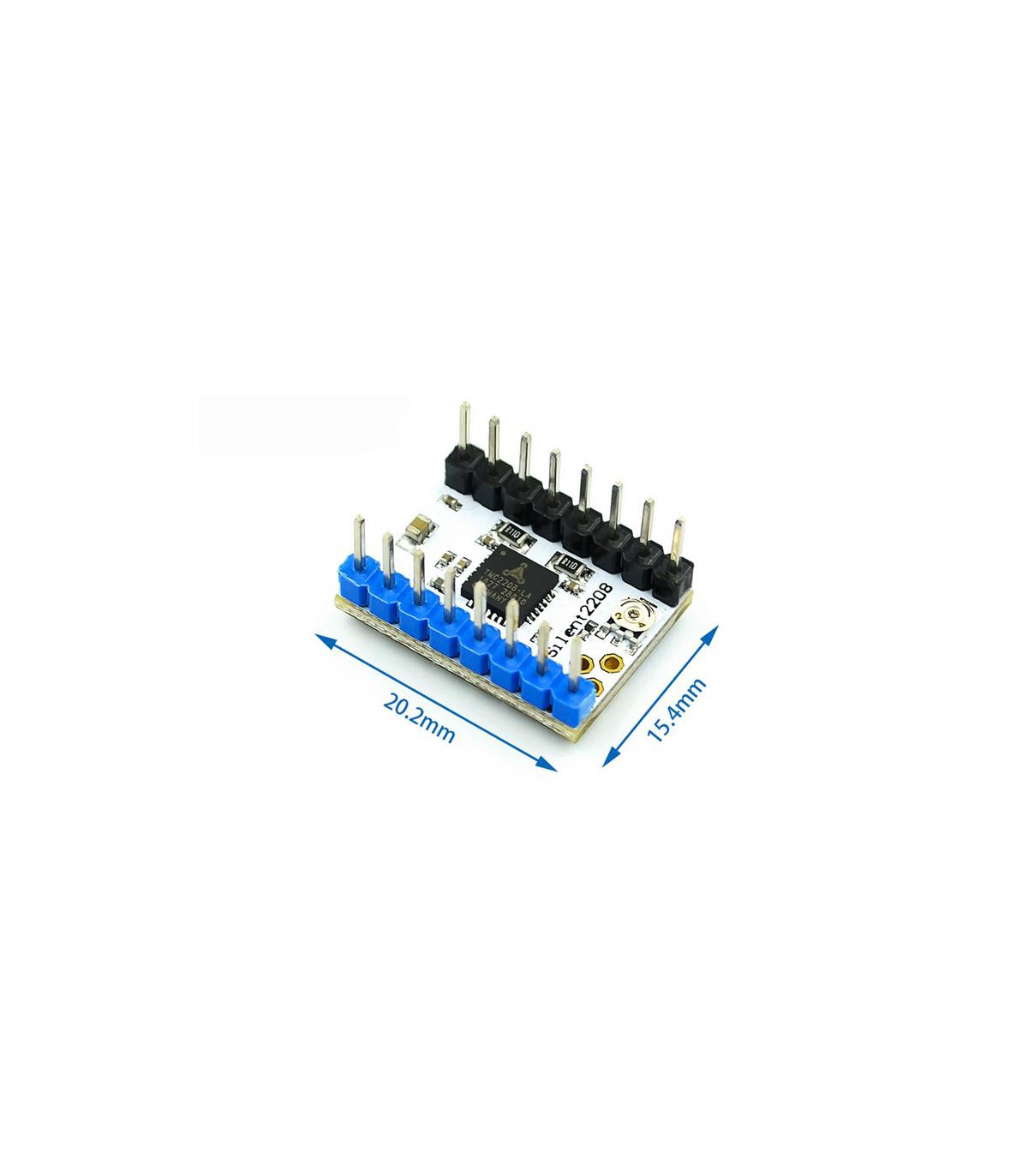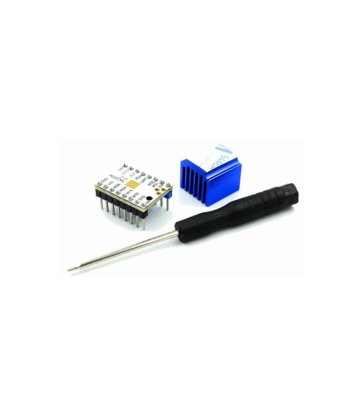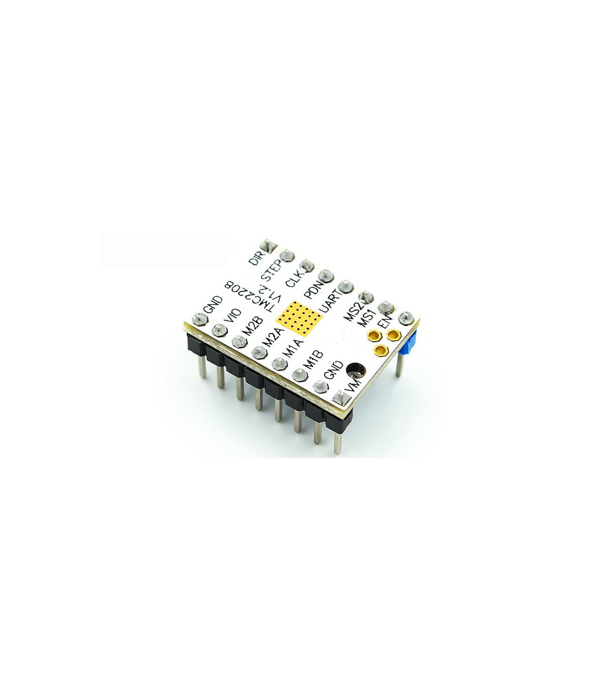 TMC2208 - драйвер шаговых двигателей, исключительной особенностью которого является очень тихая работа шаговых двигателей благодаря дополнительному дроблению микрошага (интерполяции) встроенной логикой чипа до 1/256.