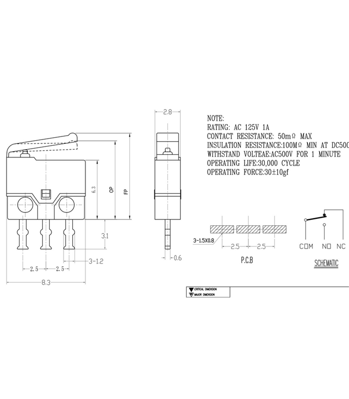 Концевой микропереключатель камеры прямой 8*6мм.