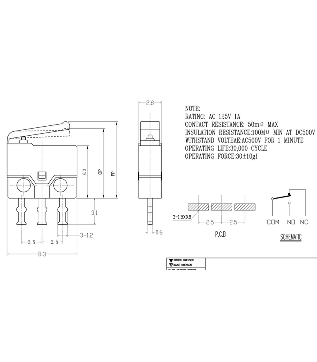 Концевой микропереключатель камеры правый 8*6мм (19058)