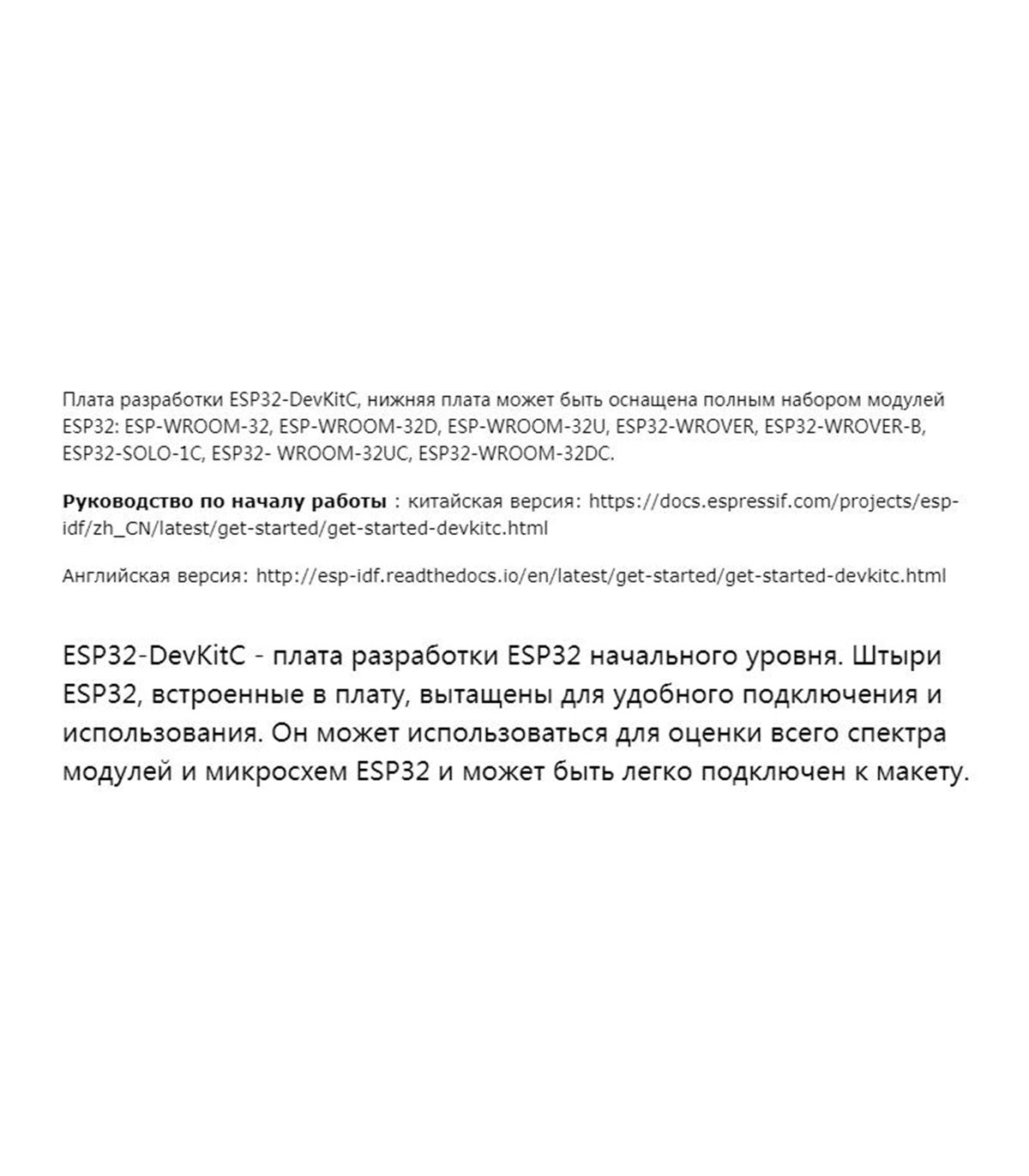 Плата ESP32S WIFI Bluetooth 2в1 с низким энергопотреблением.ESP32 — серия недорогих микроконтроллеров с низким энергопотреблением. Представляют собой систему на кристалле с интегрированным Wi-Fi и Bluetooth...