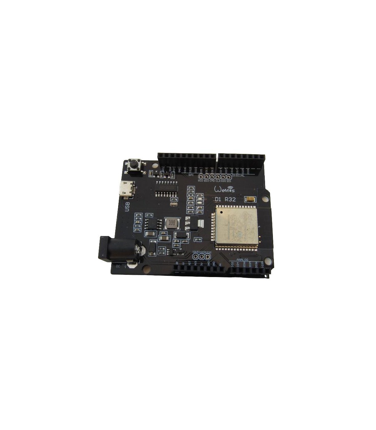 Плата ESP32 Wemos D1 R32 – это плата в формате Arduino Uno на основе WiFi Bluetooth модуля WROOM-32, который содержит микроконтроллер ESP32.